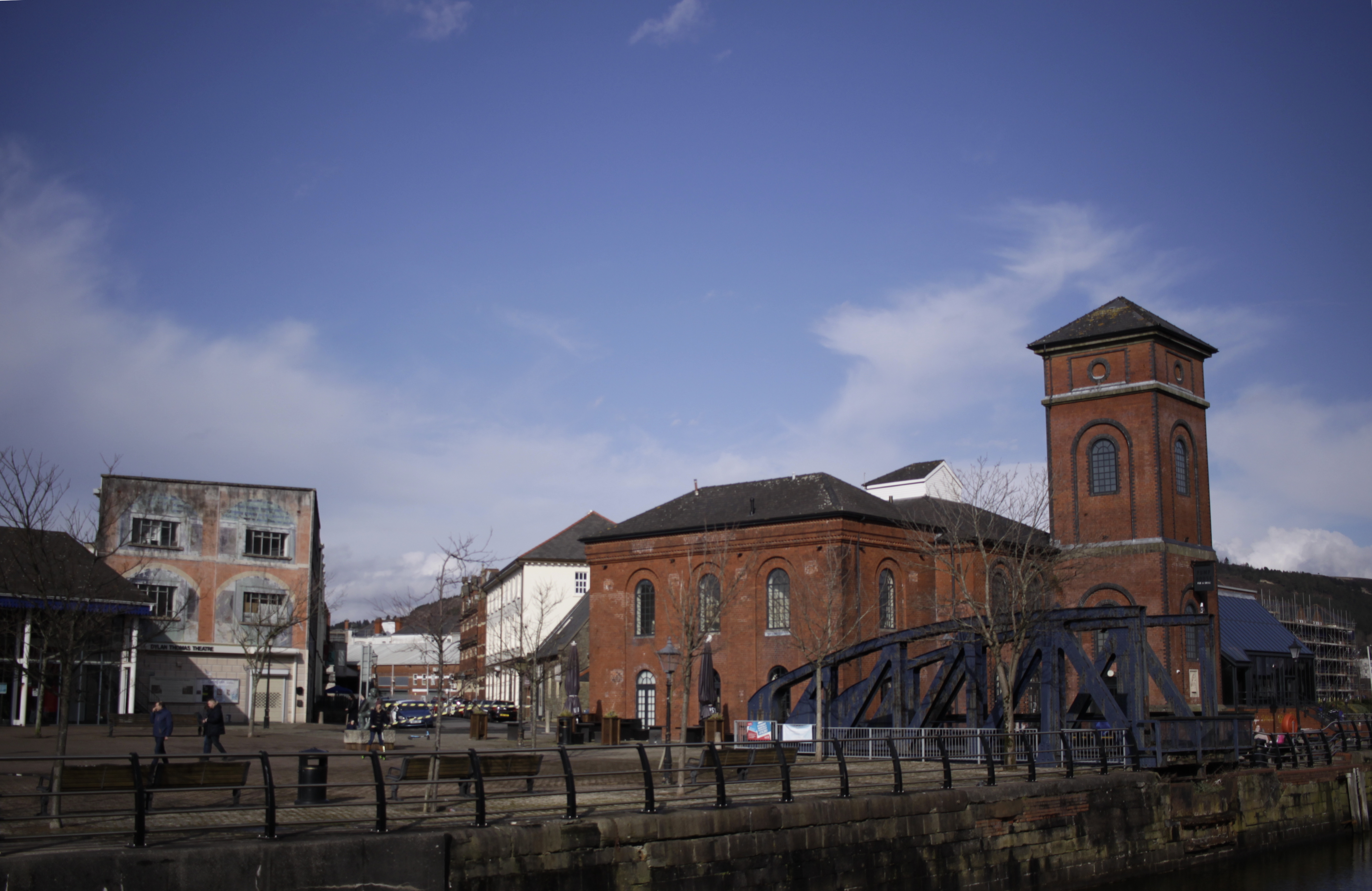 5 marca 20185 marca 2018 ~ Anga Pompownia i resztki mostu. Na placu widocznym po lewej stronie raz w miesiącu odbywa się targ rybny.
