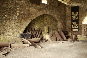 Przykładowe wyroby z żelaza w jednym z ocalałych budynków do załadunku surówki hutniczej (eng. pig iron).