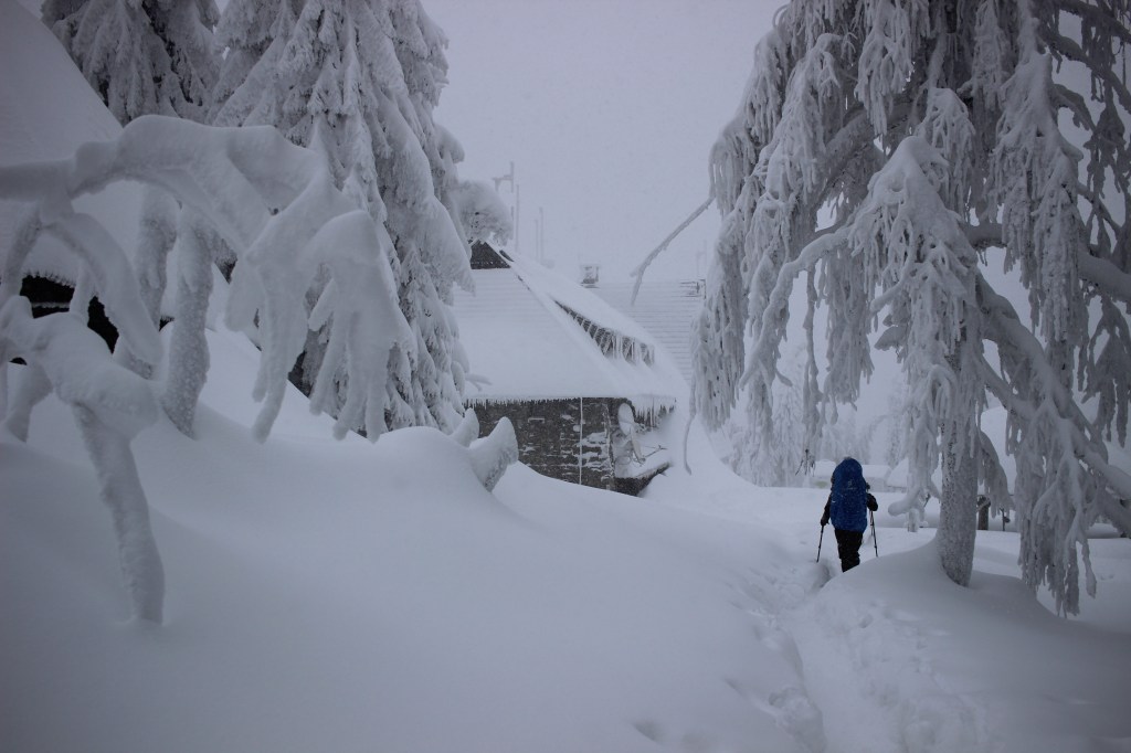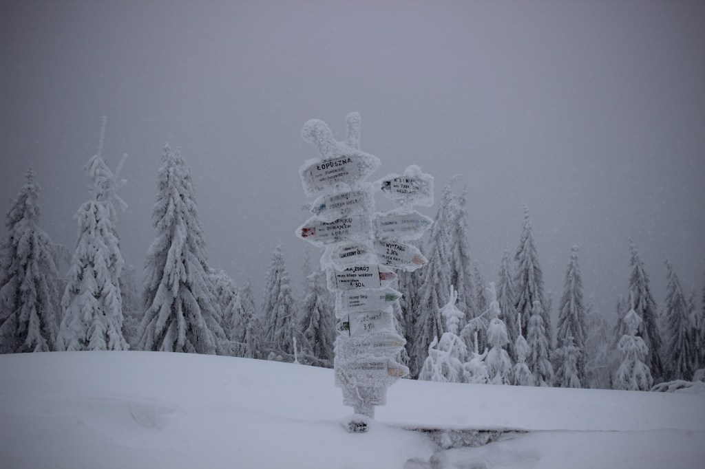 A nie było to takie oczywiste. W styczniu w polskich górach spadł śnieg, jakiego miejscowi nie widzieli od lat (a my chyba nigdy). Dosłownie parę godzin po tym, jak zeszliśmy już z powrotem do Nowego Targu, dyrektor Gorczańskiego PN wydał komunikat, w którym odradza piesze wędrówki po parku. Nam udało się trafić na dwa okna pogodowe. W piątek, kiedy wchodziliśmy, oraz w poniedziałek, kiedy schodziliśmy. Warunki były wtedy dość przyzwoite (nie padał śnieg i nie było wiatru). Natomiast w sobotę i niedzielę zrobiliśmy tylko dwa krótkie spacery w pobliżu schroniska, bo wiał silny wiatr, sypał śnieg, a widoczność była bardzo słaba.