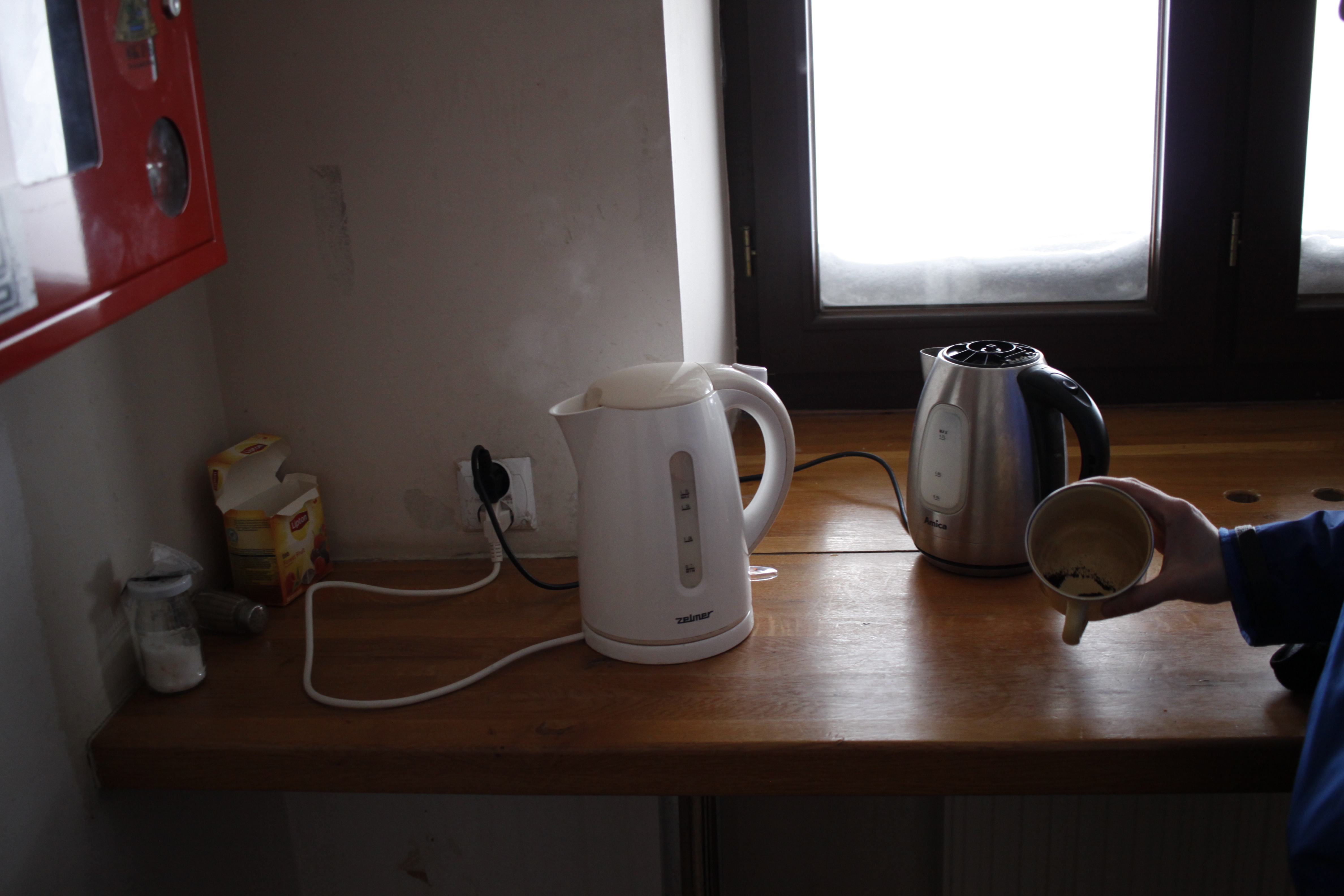 - kuchnia turystyczna – dwa sprawne czajniki, zlewozmywak, gąbka i płyn do mycia naczyń; gdyby dodać sztućce i trochę kubków, byłoby idealnie; my mieliśmy swoje kubki i parę łyżek, więc część posiłków przygotowaliśmy samodzielnie,