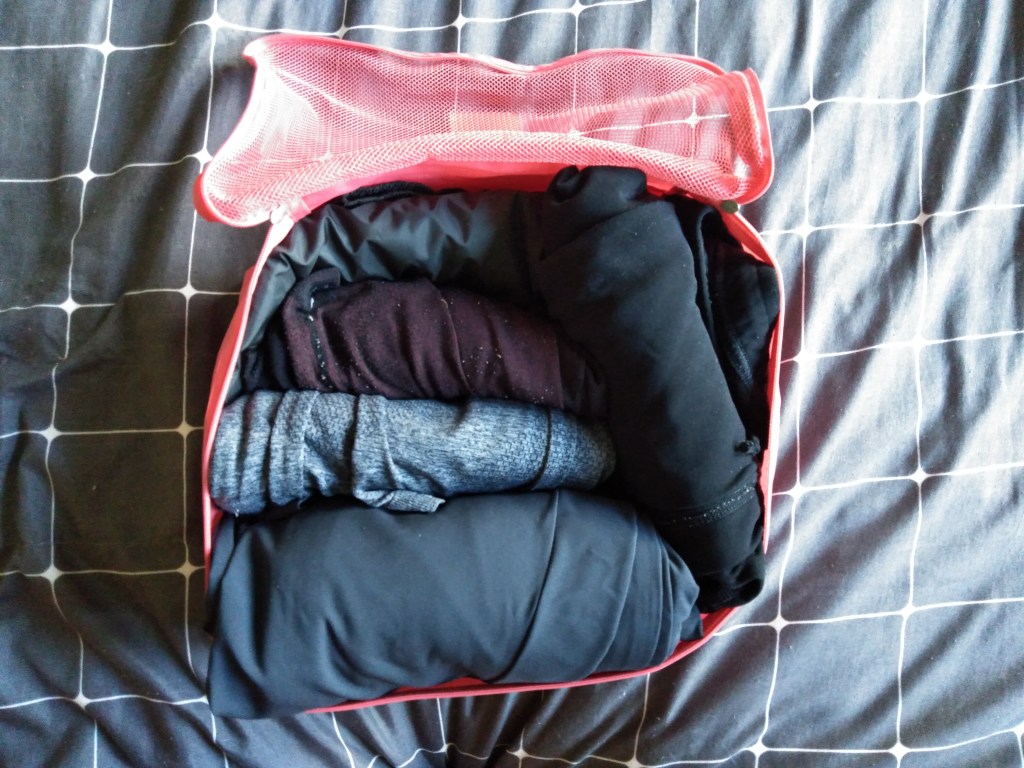 Po namyśle i analizie prognozy pogody zabrałam też kurtkę puchową – kupiłam ją 10 lat temu za 50 zł w second handzie na Mirowie, od tego czasu używam jej przez ok. 4 miesiące w roku (z przerwą w sezonie 2019/2020 – brzuch ciążowy się nie mieścił). Nie ma sportowego kroju, ale ma dobrej jakości wypełnienie z puchu gęsiego i na pewno przyda się na najzimniejsze dni.