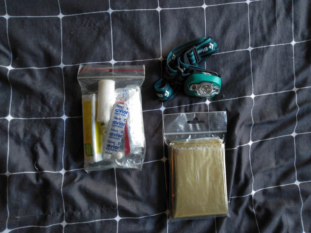 Trzeba też koniecznie pamiętać o czołówce i dobrze wyposażonej apteczce. My oprócz standardowych przeciwbólowców i tabletek na gardło mamy gazę jałową, specjalne plastry na głębokie rozcięcia, plastry z opatrunkiem, plastry na odciski, lekarstwo na zatrucia pokarmowe i na chorobę lokomocyjną oraz koc termiczny.