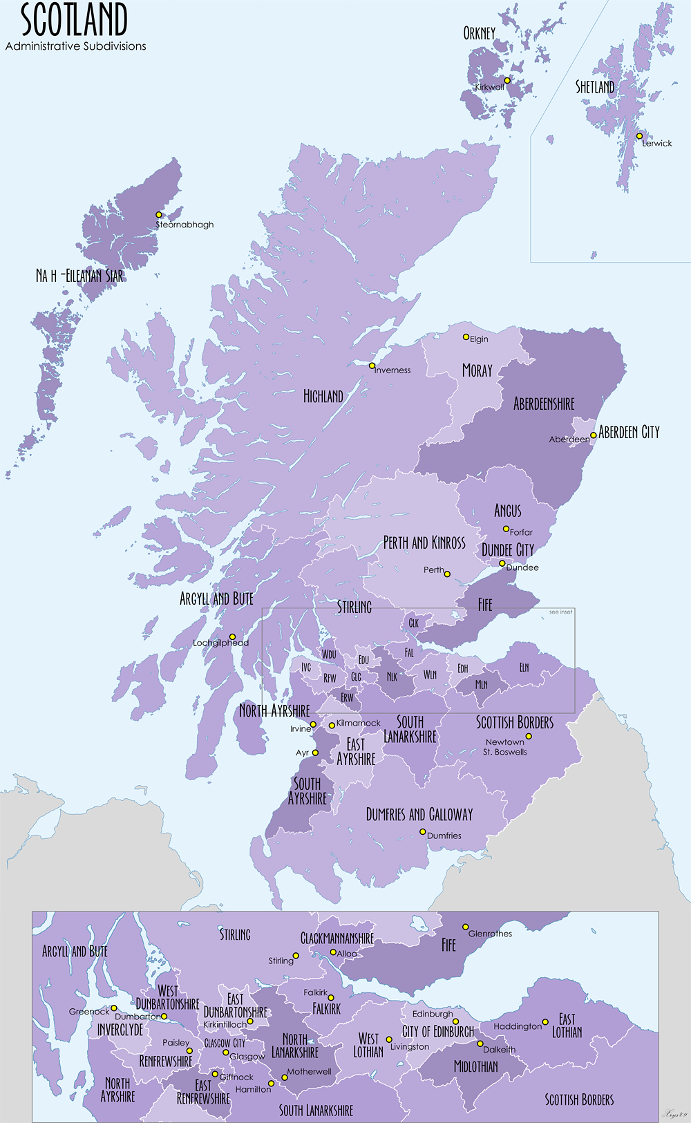 Przed wyjazdem próbowaliśmy oczywiście dowiedzieć się czegoś więcej o tym, co może nas czekać, oraz o samej Szkocji. Dla mnie fascynujący jest podział administracyjny kraju: