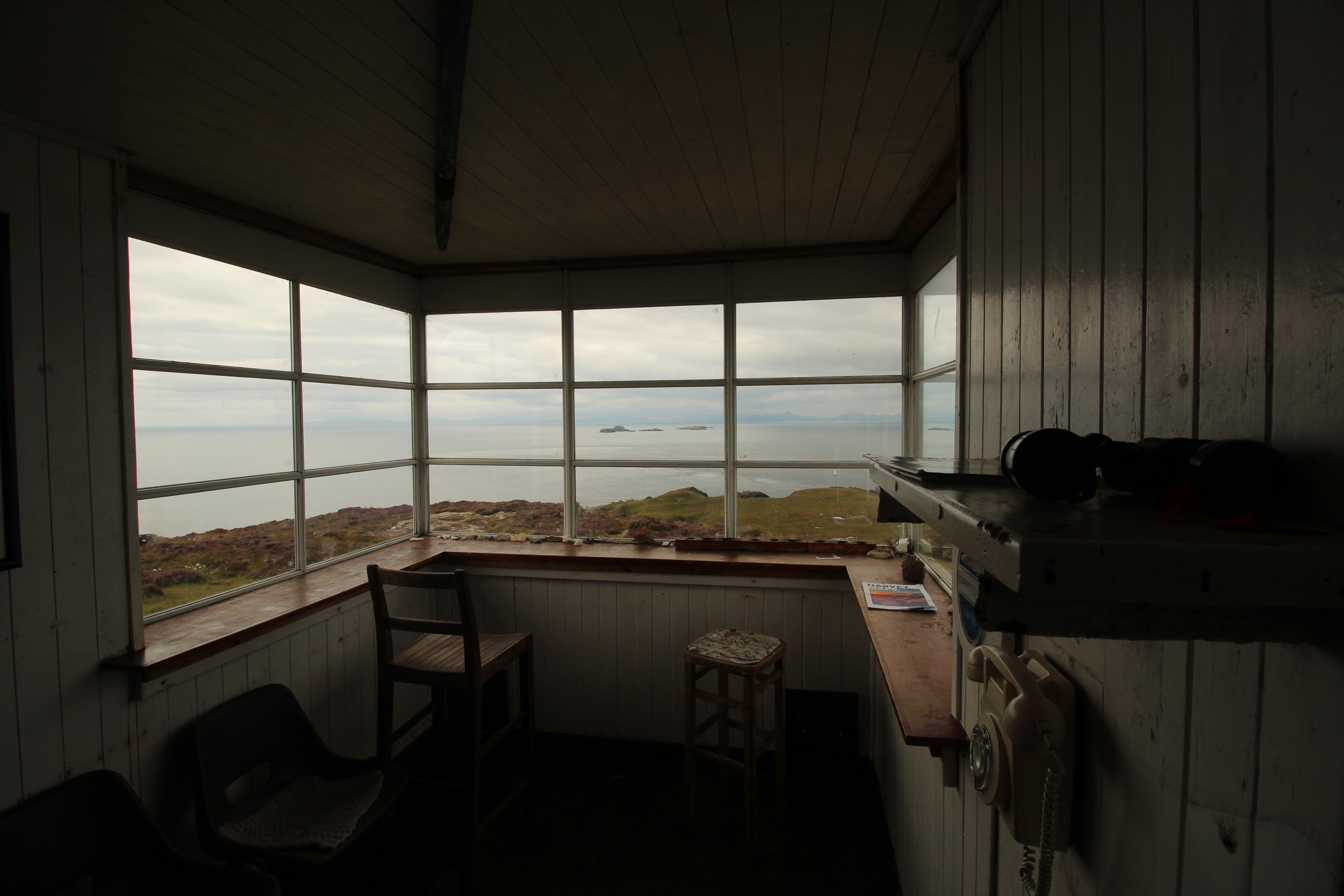 Jeśli ktoś kiedyś czytał coś na temat Skye Trail to wie, że oficjalnie rozpoczyna się od czerwonej budki telefonicznej, ale tak naprawdę samo wejście jest odrobinę dalej i wyżej, przy parkingu samochodowym. Wystarczy podążyć wyraźną ścieżką za znakiem wskazującym na Rubha Hunish, a potem pod górę do białego domku, który służy jako schron awaryjny. W środku jest maleńka sypialnia z piętrowym łóżkiem z drewnianych płyt, zakątek, który może służyć za kuchnię (są tam zostawione produkty spożywcze, ale trzeba pamiętać, że nie można tam używać kuchenki gazowej) oraz główny pokój, z którego rozpościera się genialny widok na morze (a w dodatku są tam porządne mapy wysypy).