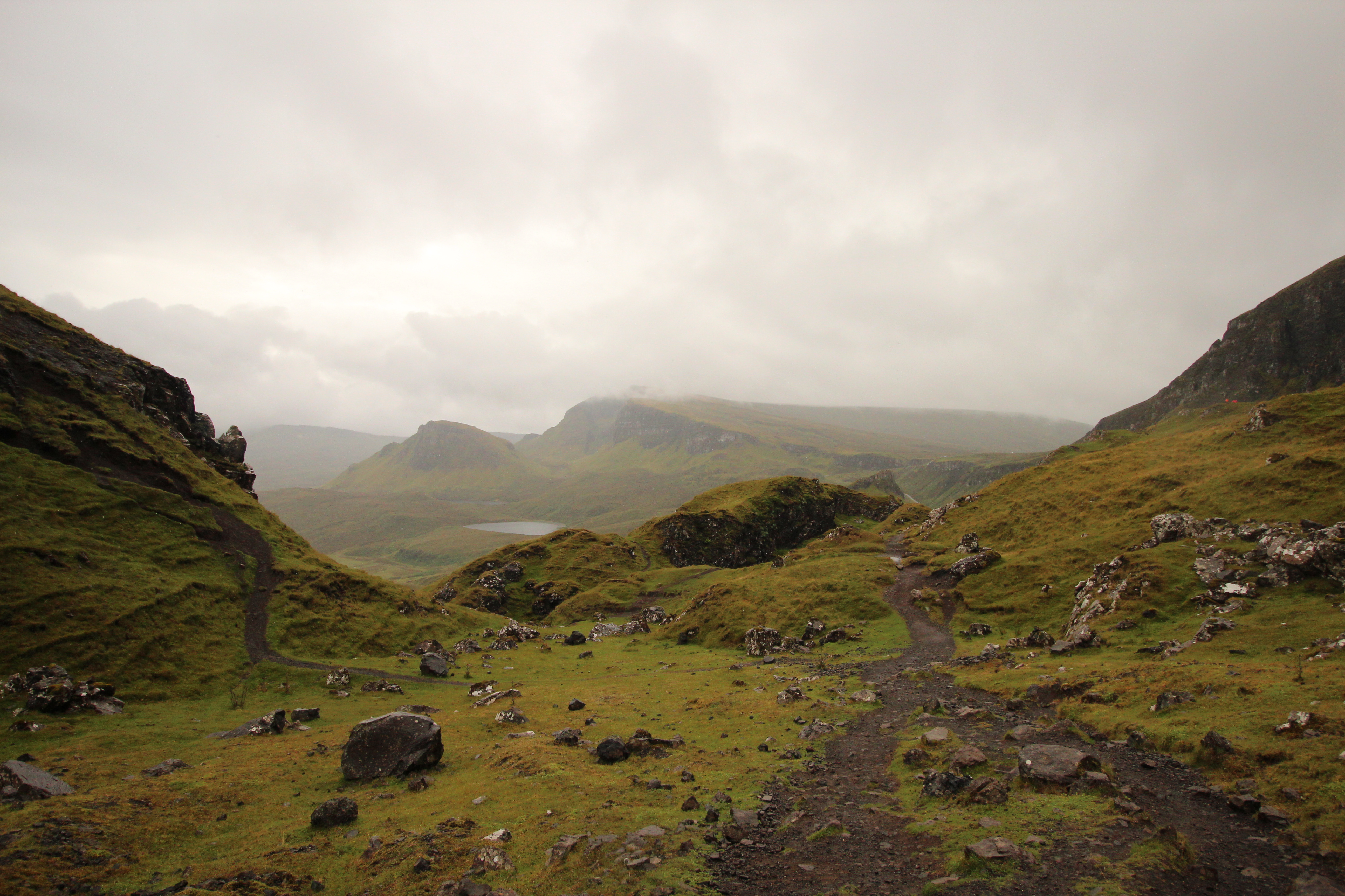 We wtorek ruszyliśmy na drugi etap Skye Trail. Tym razem czekało nas większe niż poprzedniego dnia wyzwanie, bo 28 kilometrów i 1780 m podejść. Mieliśmy ambicje wyjść wcześnie, ale w końcu 2 godziny zajęło nam zbieranie całego obozowiska i dopiero o 8 zaczęliśmy marsz w stronę parkingu przy wejściu na szlak prowadzący do Quiraing.