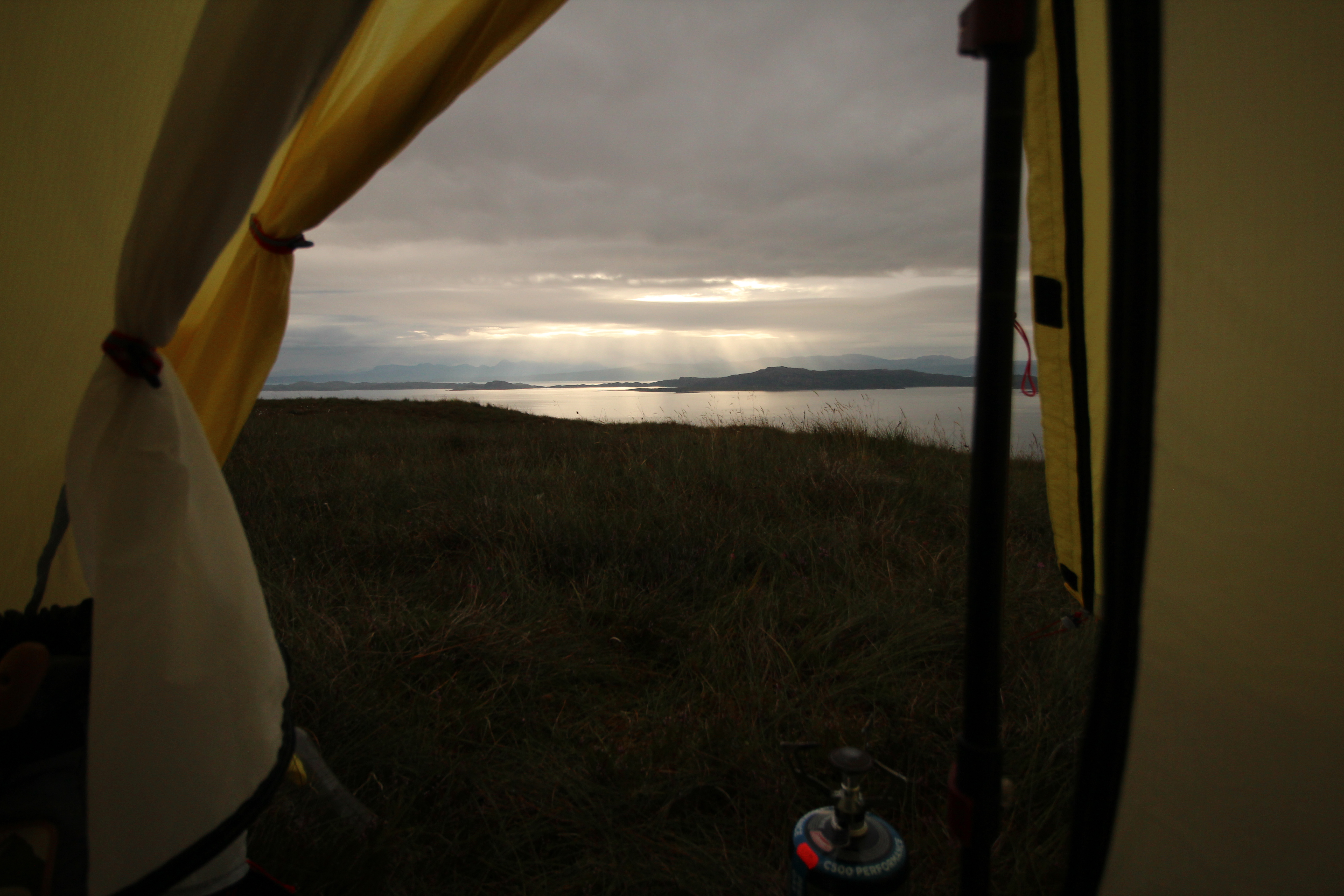 W czwartek w nocy zaczął padać deszcz, a silny wiatr znad morza kilkukrotnie wybudzał nas ze snu. Zastanawialiśmy się, czy namiot wytrzyma, ale póki co marka krzak pokazała się od najlepszej strony. Dzięki wiatrowi rano namiot nie był zbyt mokry, ba, był bardziej suchy niż poprzedniego poranka, bo nie zostało nam nim aż tyle porannej rosy.