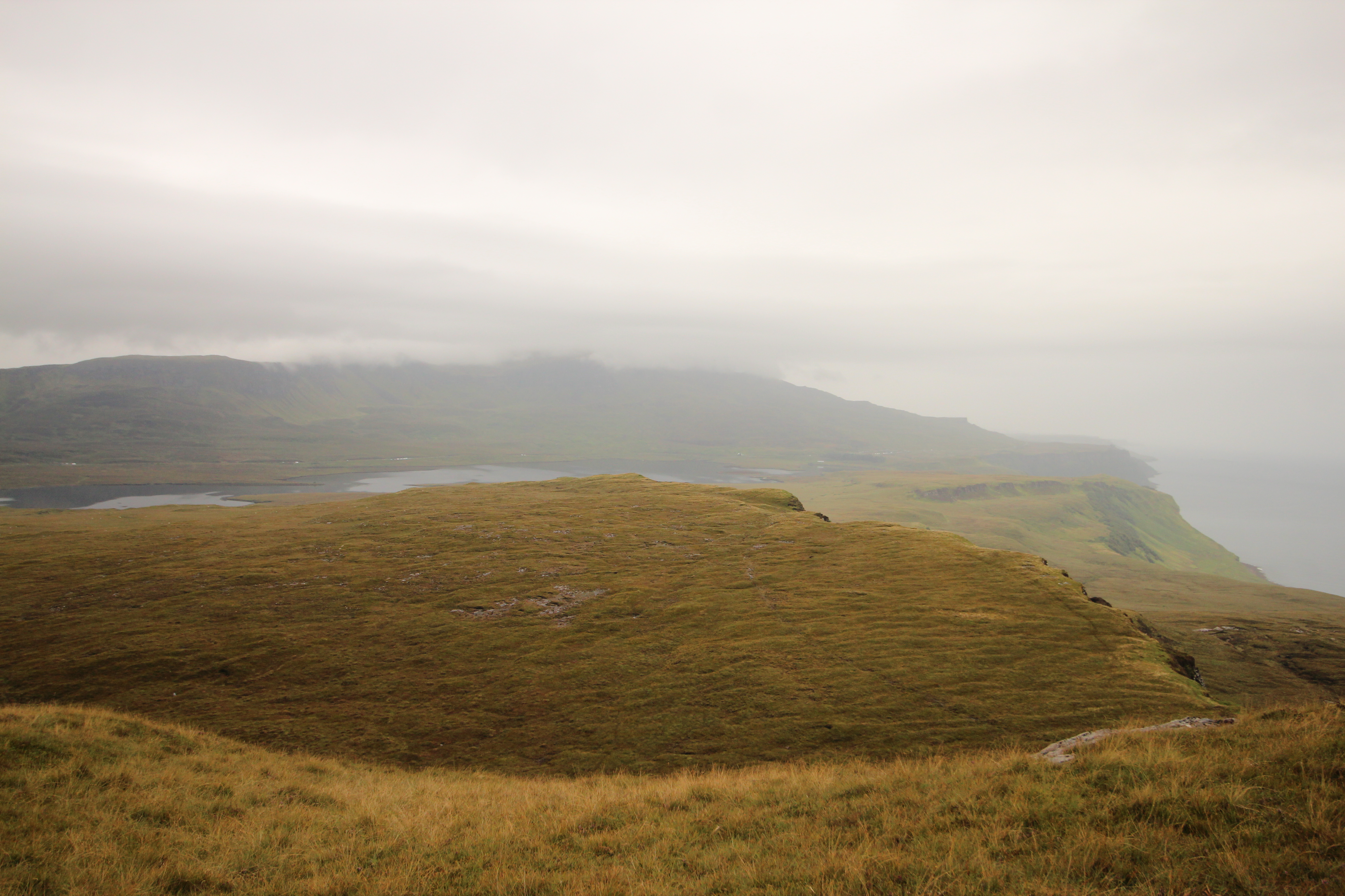 Po porannych rytuałach, które znów zajęły nam dwie godziny, ruszyliśmy w stronę Portree. Mimo że pogoda znów była deszczowa i niejednokrotnie przedzieraliśmy się przez chmury, marsz był łatwiejszy niż w poprzednich dniach ze względu na mniejsze przewyższenia. Trzeci etap to 509 metrów podejść na odcinku 14 kilometrów (z których poprzedniego dnia przeszliśmy już 3).