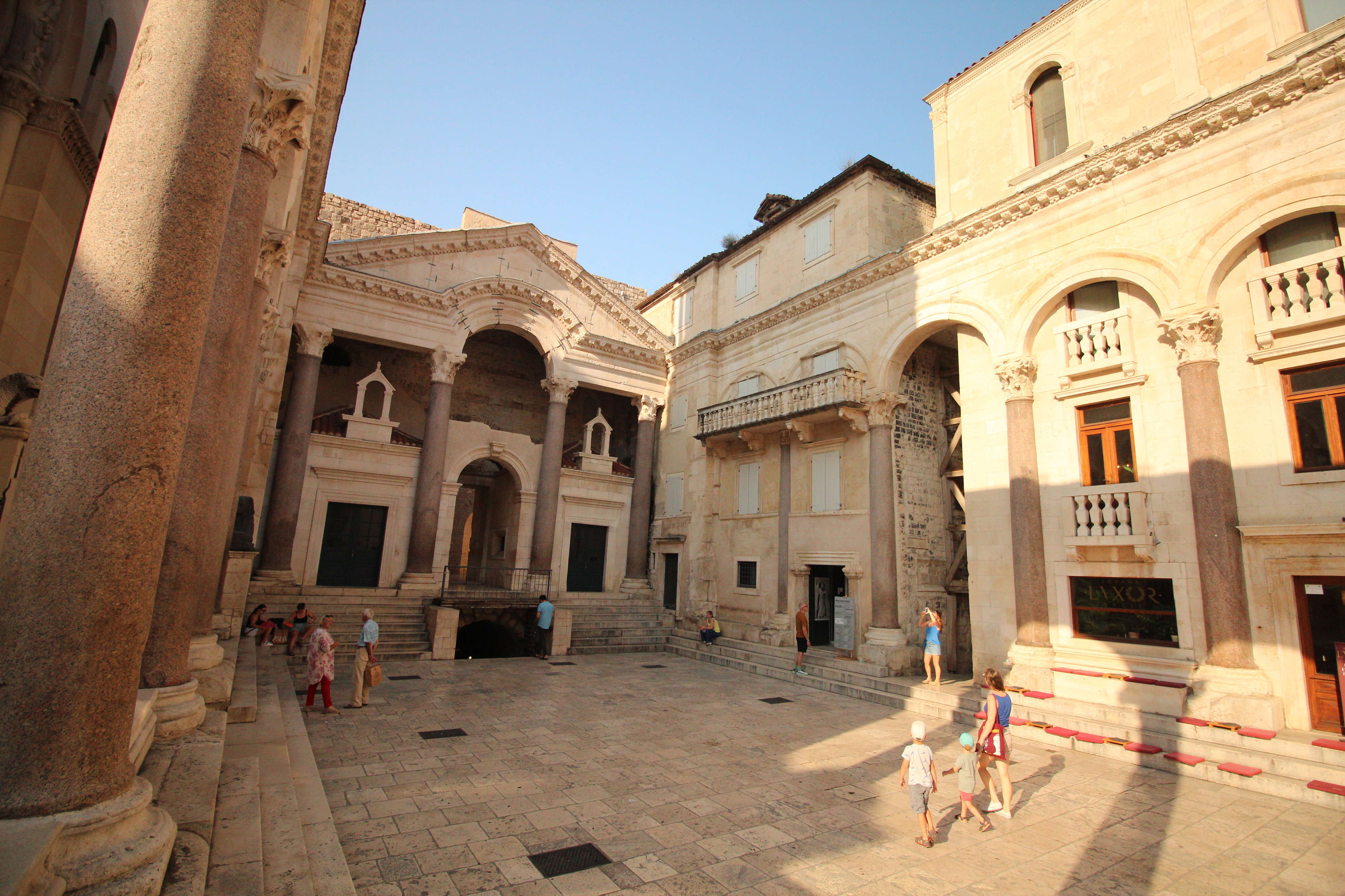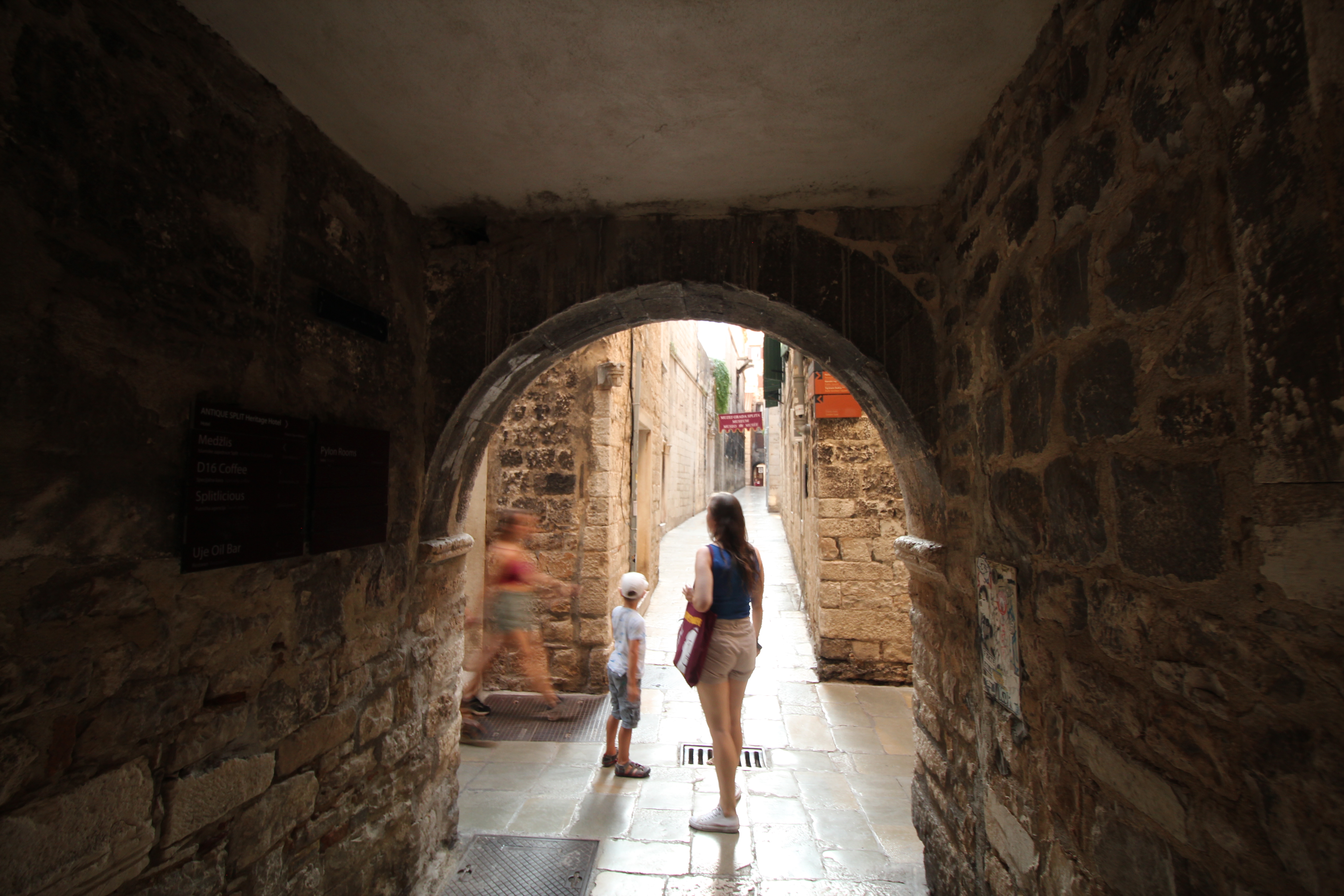 Pod Zlatną Vratą spotkaliśmy już pierwsze grupy wycieczkowe, ale wiele uliczek w centrum było jeszcze opustoszałych, więc spacer był naprawdę przyjemny. Split jest o tyle ciekawy, że jego największa atrakcja – pałac Dioklecjana z IV wieku – jest ogólnie dostępna. Ogromna rezydencja cesarza imperium została wypełniona średniowieczną zabudową. Podczas spaceru można podziwiać gotyckie łuki (a nawet barokowe ozdoby) wśród rzymskich kolumn. Jeśli macie okazję do wycieczki ze znawcą architektury, możecie w godzinę zapoznać się z dobrym kawałkiem historii i wieloma stylami.