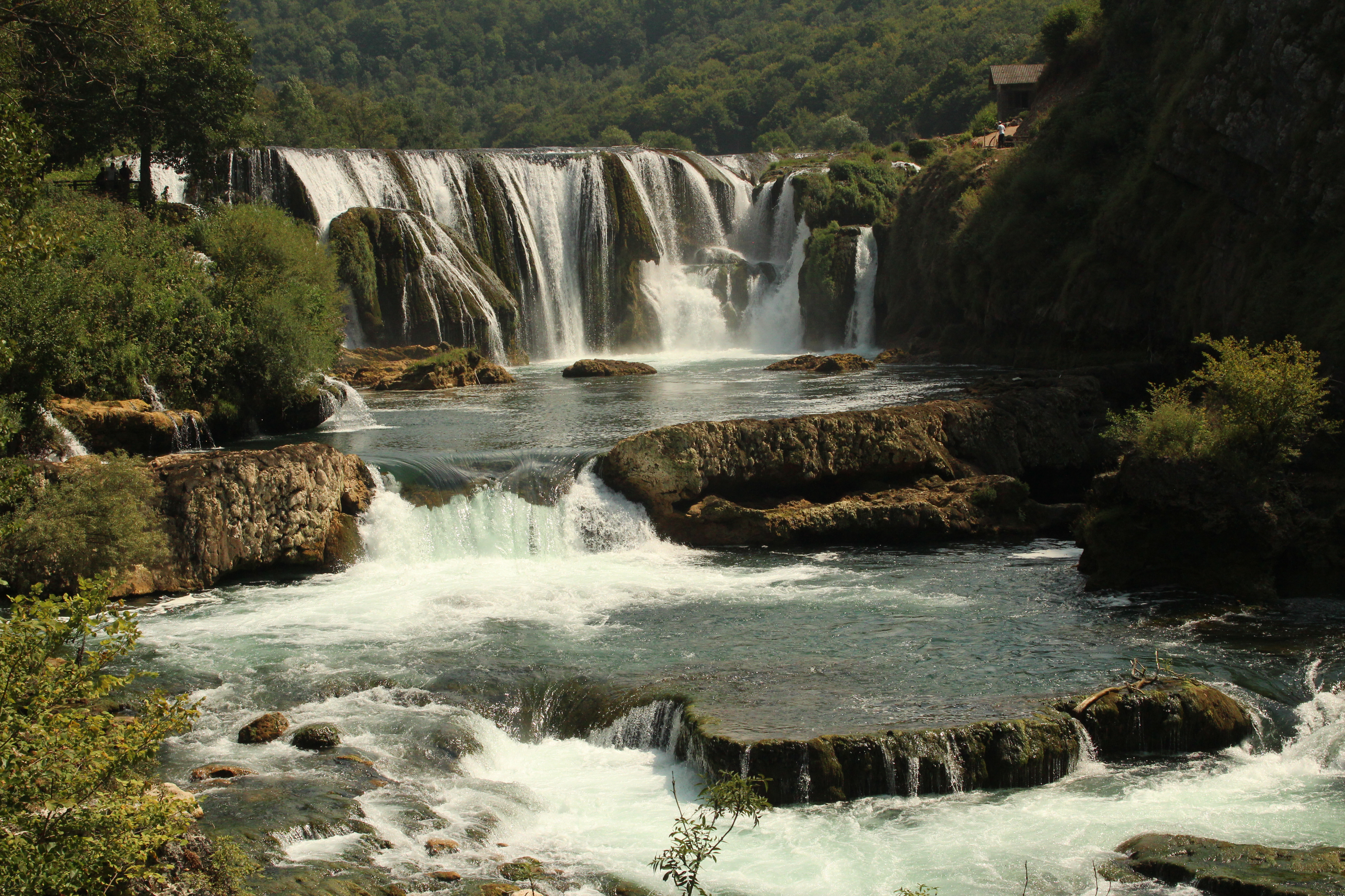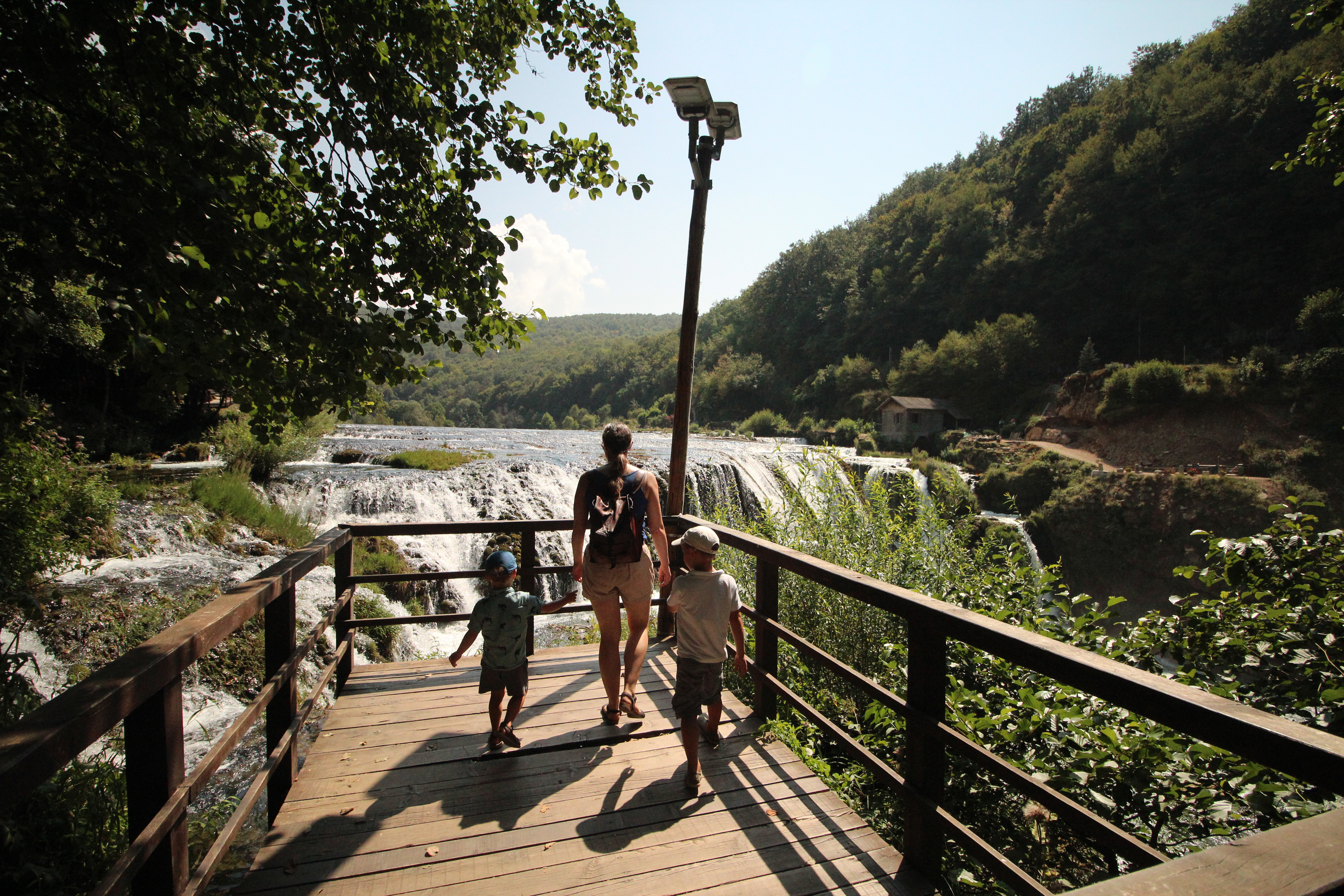 Trasa wzdłuż rzeki do po prostu drewniany chodnik, w strategicznych miejscach umieszczone są też platformy i wieże widokowe. Całość robi wrażenie; oprócz wodospadu mijamy też bardzo widowiskowe kaskady, a oprócz tego przechodzimy nad odnogami Uny. Lekka trasa turystyczna kończy się przy skałach, na które, mimo zakazu, wszyscy wchodzą. Dla wciąż spragnionych wrażeń są jeszcze 2 czy 3 kilometry skalistego szlaku wzdłuż rzeki. Tej trasy nie polecamy robić w sandałach, ale jesteśmy przekonani, że tam turystów będzie już jak na lekarstwo, więc na pewno warto spróbować.