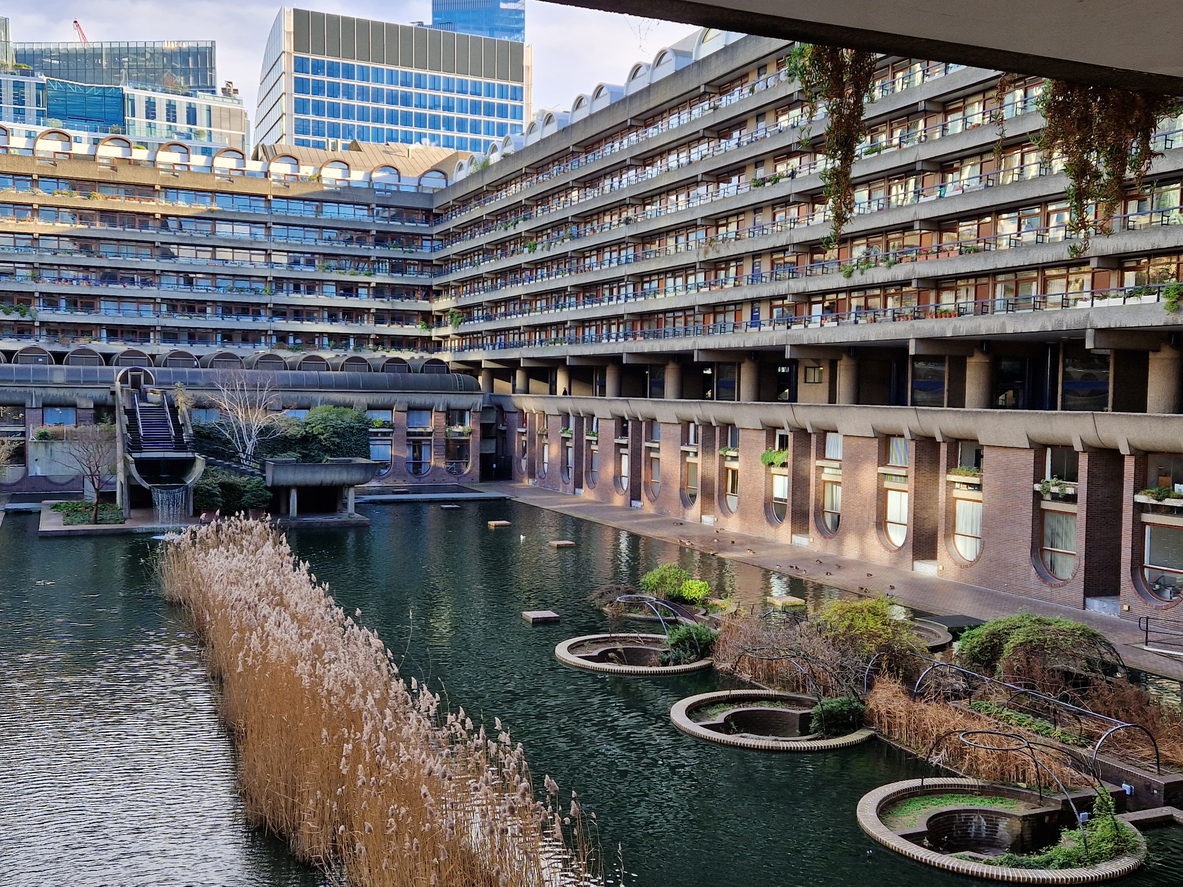Z Greenwich podjechaliśmy autobusem w okolice Tower Bridge, a stamtąd krótkim spacerem wzdłuż Tamizy i przez City doszliśmy do Barbicanu, czyli kolejnej ikony brutalizmu w Londynie. Może to zasługa słońca, a może skala projektu, ale Barbican zrobił na mnie piorunujące wrażenie. Osiedle powstawało przez dekadę, na przełomie lat 60. i 70. ubiegłego wieku. W jego skład wchodzi trzynaście bloków i trzy wieżowce. Polecam poczytać więcej na jego temat tutaj, a jeśli będziecie w Londynie, koniecznie wpadnijcie na spacer – być może uda wam się też trafić na któreś z wydarzeń z oferty kulturalnej Barbican Centre.