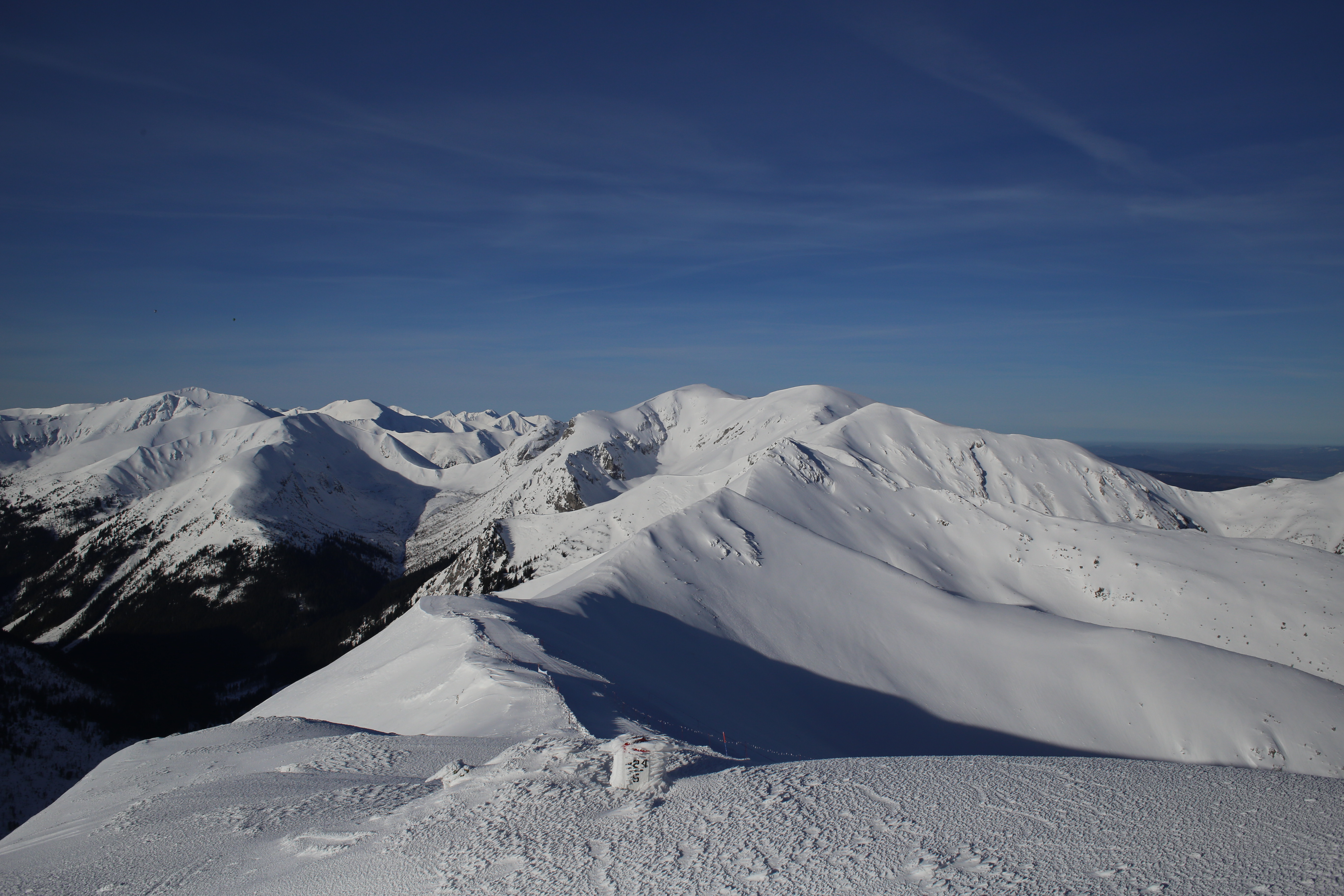 Pogoda tego dnia nie była zbyt zachęcająca do spacerów. Duże zachmurzenie sprawiło, że nie mogłam się cieszyć panoramą Tatr Wysokich (a ta jest zjawiskowa, szczególnie z Rusinowej Polany). Śniegu było na tyle mało, że raczki założyłam dopiero przy podejściu na Gęsią Szyję, a po niecałej godzinie musiałam je już zdjąć, żeby ich nie zupełnie nie zniszczyć na kamieniach. Zupełnie inaczej wyglądały Tatry w Walentynki. Ten dzień był przepięknie słoneczny i Marcin postanowił wykorzystać to na wjazd na Kasprowy Wierch pierwszego tego dnia kolejką. Widoki były fantastyczne, ale… śniegu nieco za dużo. Do spaceru granią Tatr Zachodnich niezbędne byłyby raki i może nawet czekan, a tych ze sobą nie wzięliśmy.