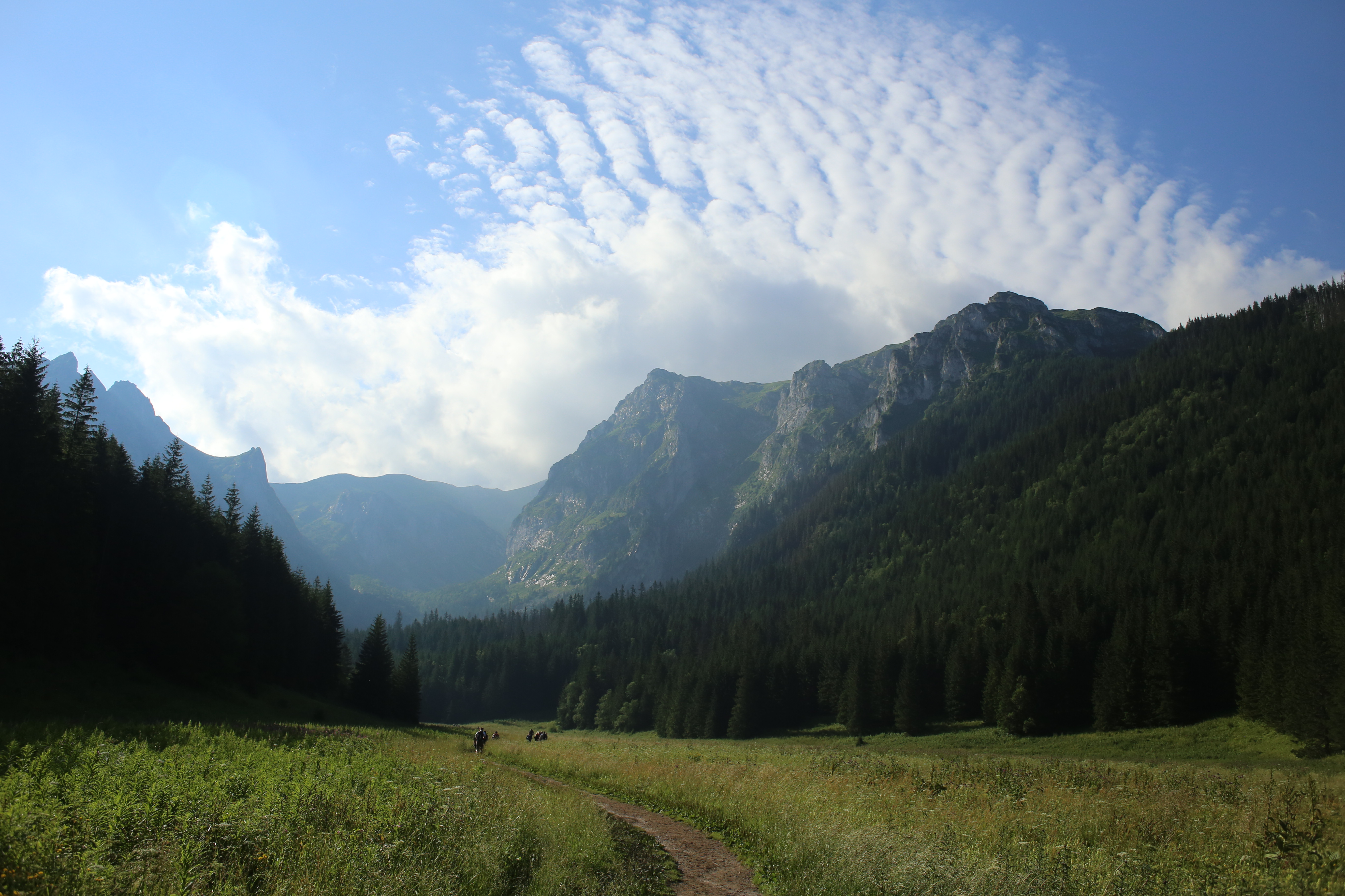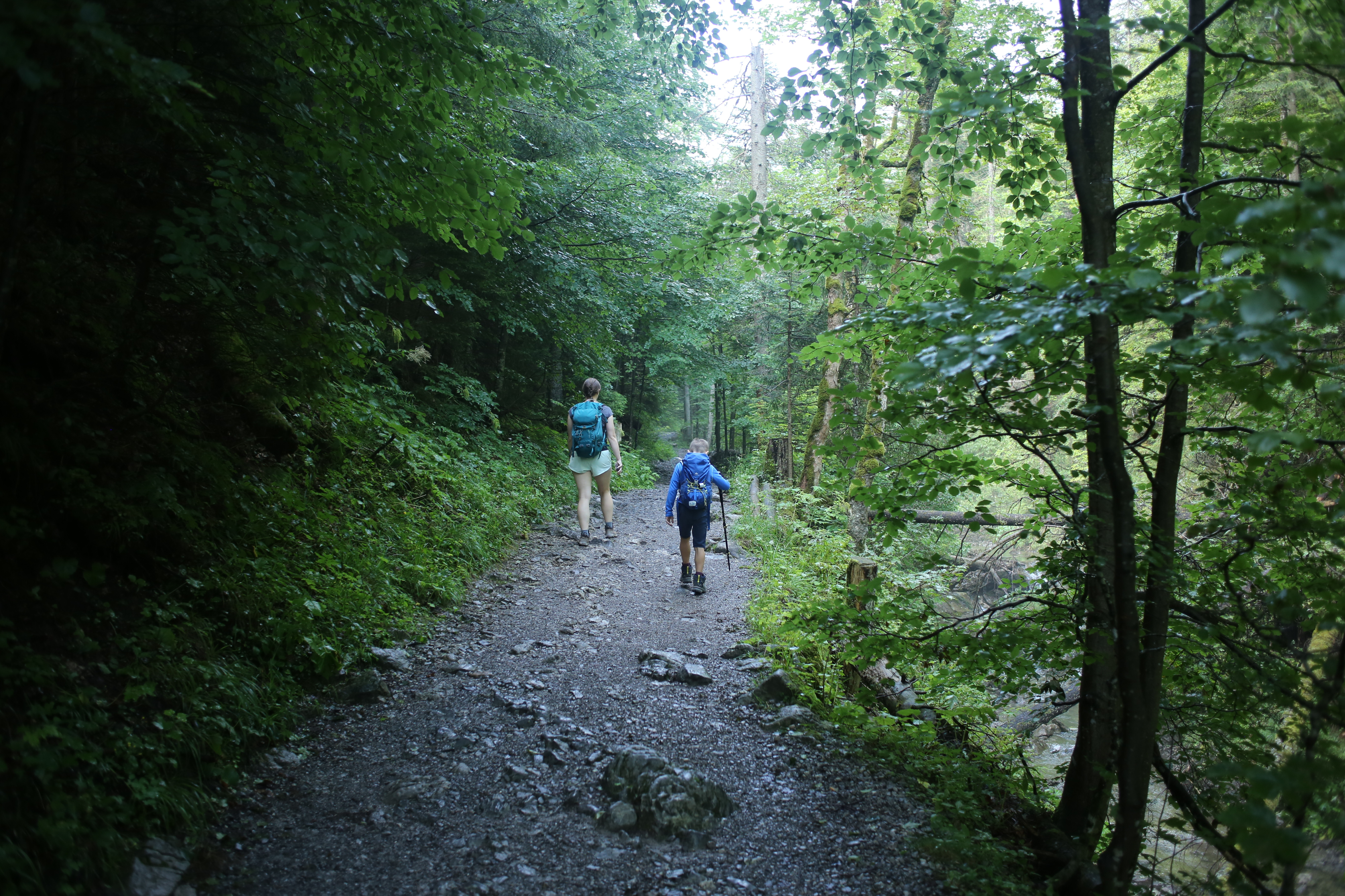 Nie wiem, czy to kwestia innej pory roku, ale Dolina Białego spodobała mi się dużo bardziej niż kilka miesięcy wcześniej Strążyska. Ruszaliśmy na szlak tuż po 8 rano, droga wiodła dość długo przez piękny wąwóz, a na dodatek otoczeni byliśmy soczystą zielenią i parującą po porannym deszczu wodą. Byliśmy też zupełnie sami, bo dopiero w połowie drogi zaczęliśmy spotykać innych turystów.