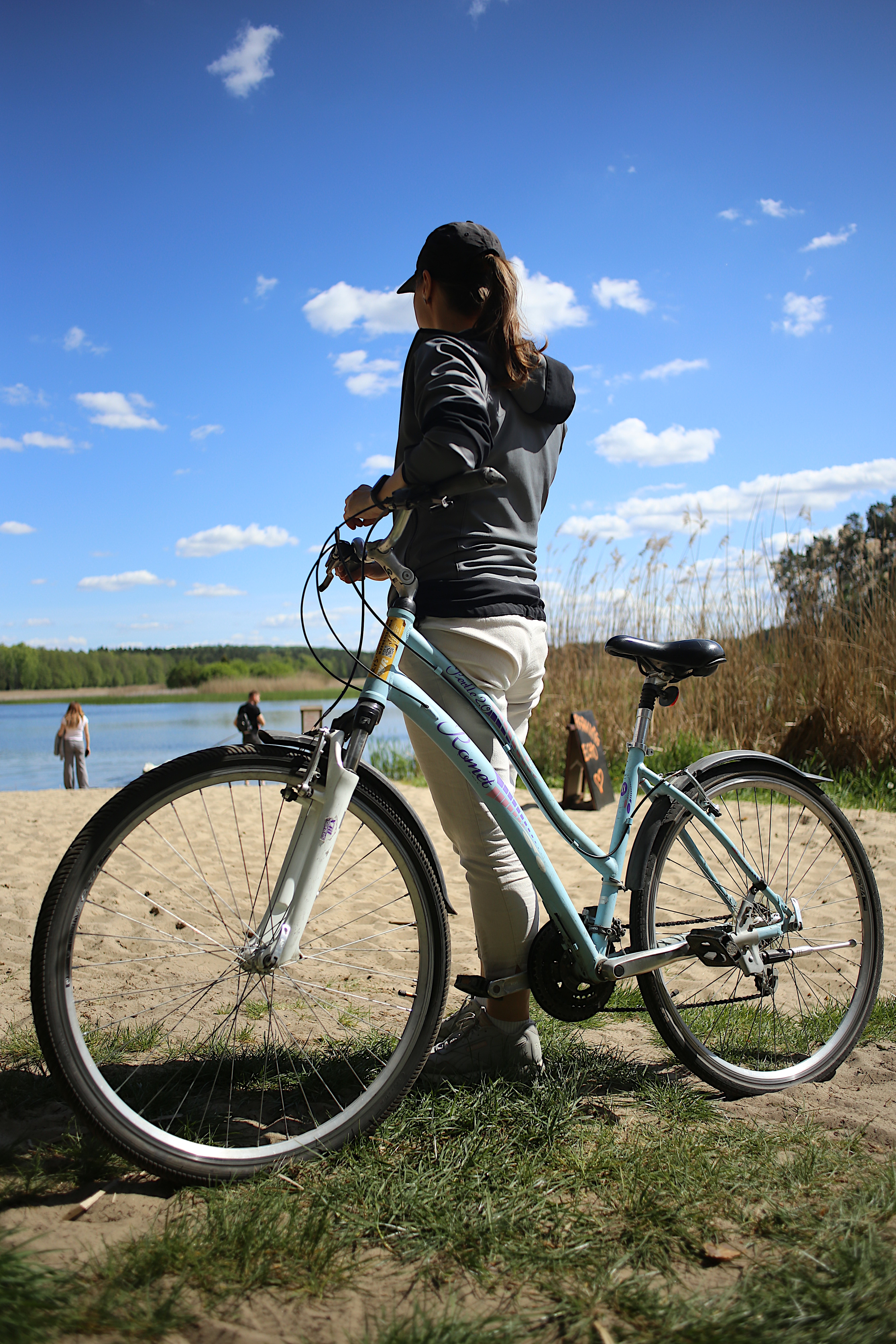 Wypożyczyliśmy rowery w wypożyczalni Ryś (polecamy ze względu na lokalizację i bardzo dobre ceny), po czym ruszyliśmy w stronę największych atrakcji RPN. Minęliśmy Browar i Pałac Plenipotenta i po przejechaniu bardzo krótkiego kawałka drogą asfaltową, dotarliśmy nad Stawy Echo. Nie spodziewałam się tego w parku narodowym, ale można się tam kąpać. Na północnym brzegu znajduje się plaża i kąpielisko, w pobliżu jest też parking i toalety. W maju woda może nie była najcieplejsza, ale myślę, że latem musi być tutaj tłoczno. Jeśli chodzi o Stawy, to polecam serdecznie podjechanie kawałek na południe, bo znajduje się tam wieża widokowa z lepszym widokiem niż platforma przy plaży, a w dodatku bez tłumu.