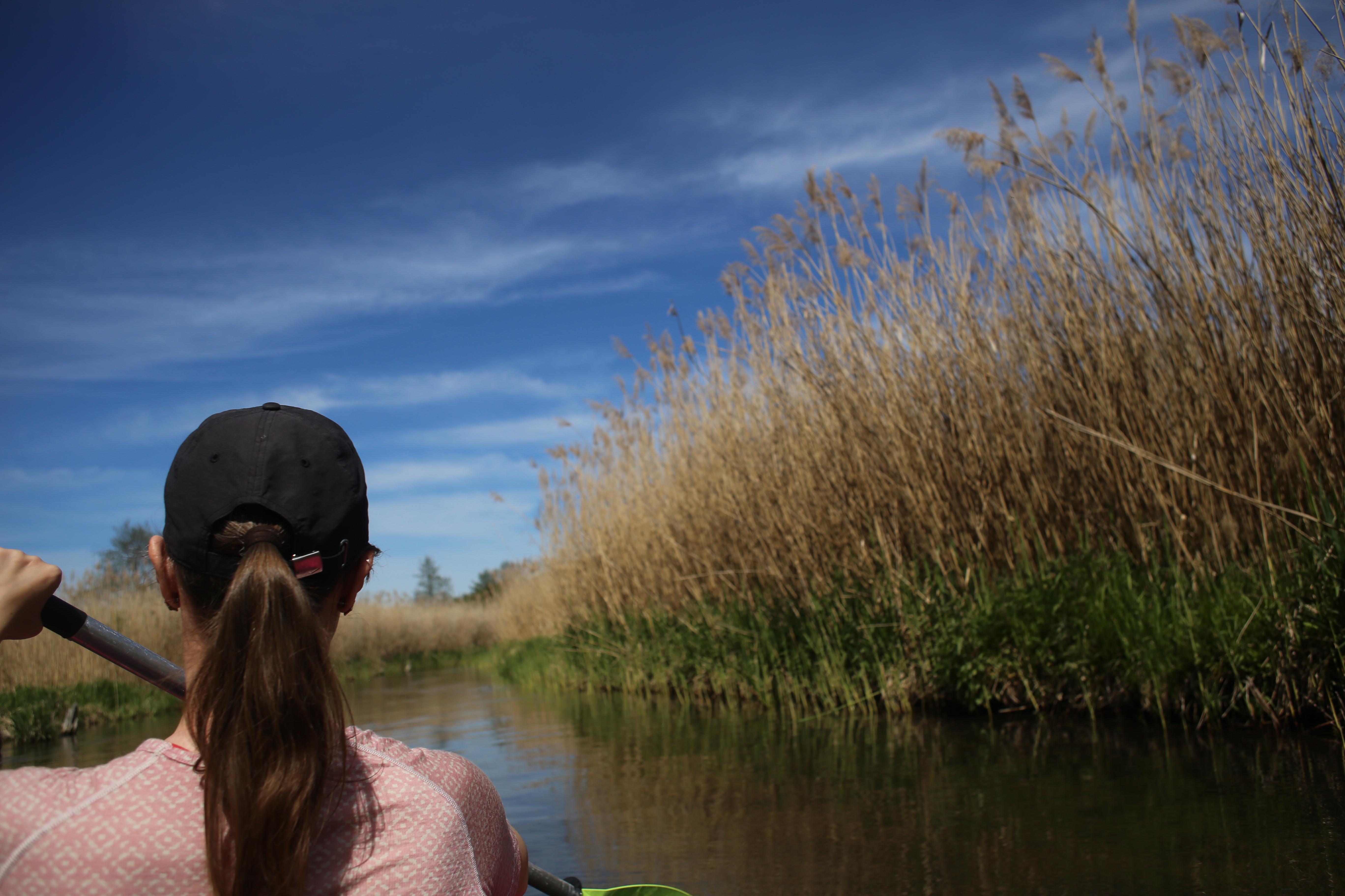 Rano przyjechaliśmy nad zalew Rudka. Przy ulicy Kolejowej jest centrala większości firm kajakowych w okolicy – na sporym wybetonowanym parkingu stoją stoiska 6 czy 7 firm, które na bieżąco rozwożą klientów na punkty startowe poszczególnych spływów. My zdecydowaliśmy się na Eskulapa i od razu po krótkiej odprawie technicznej zostaliśmy zawiezieni do Obroczy, gdzie czekał na nas cały niezbędny sprzęt. Poza licznymi meandrami I etap był dość spokojny i bez problemu dotarliśmy na zalew. Tam musieliśmy wynieść kajak na brzeg i przenieść go na drugą stronę tamy.