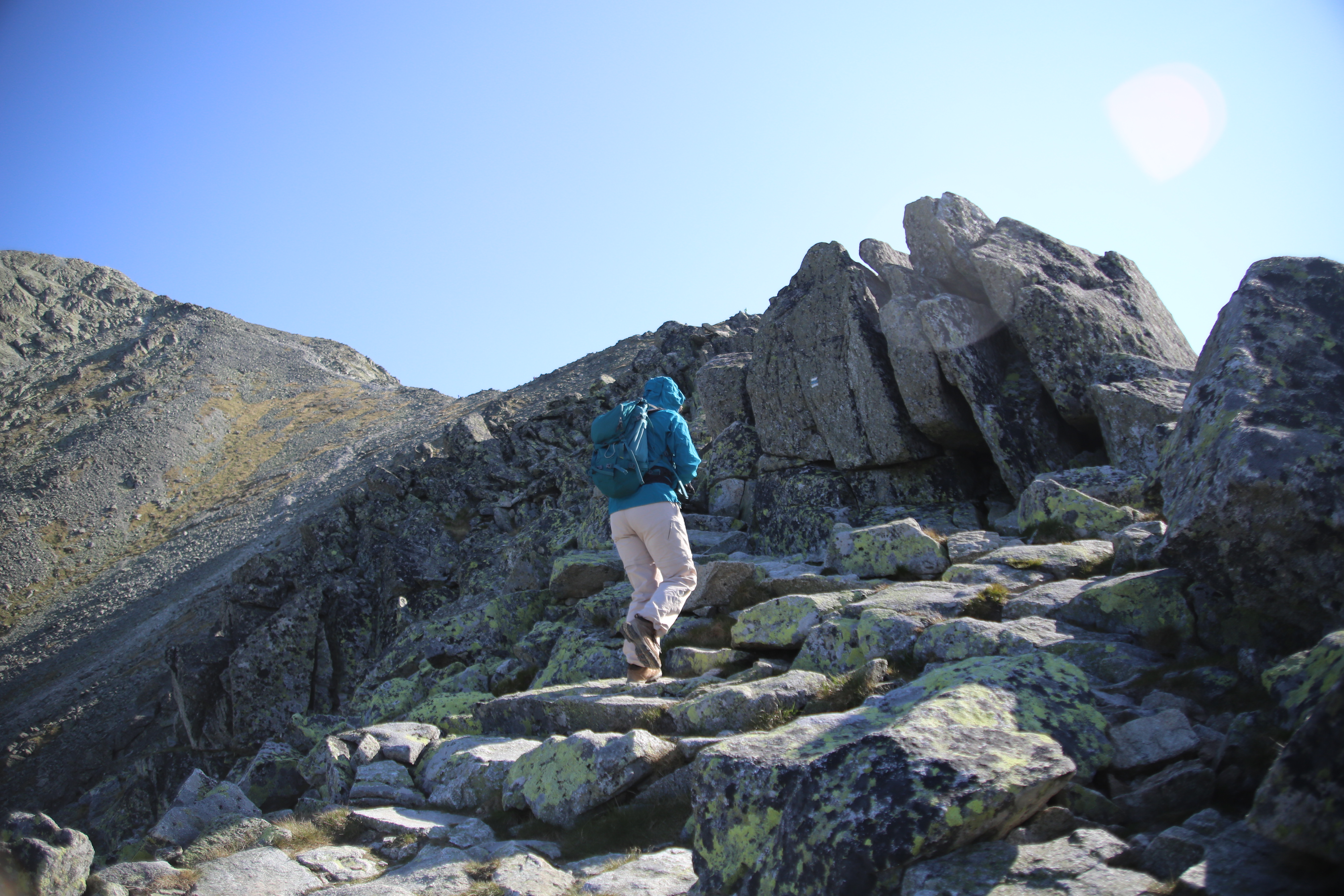 Jeśli idziecie na szczyt, pamiętajcie, że ostatnie pół godziny to scrambling – „wspinanie się po stromym terenie za pomocą rąk, które pomagają w utrzymaniu równowagi i utrzymaniu równowagi”. Coś pomiędzy wędrówką a wspinaczką skałkową. W takich miejscach w górach często montowane są łańcuchy i inne sztuczne ułatwienia, ale nie na tym szlaku. W trakcie schodzenia ze szczytu trafiliśmy na osobę, która psychicznie nie dała sobie rady z tym kawałkiem i po kilku minutach blokowania szlaku zeszła nieco niżej. Tutaj nie trzeba znać się na wspinaczce, ale obycie ze skałą to mus, a i doświadczenie na ściance wspinaczkowej też się przydaje.