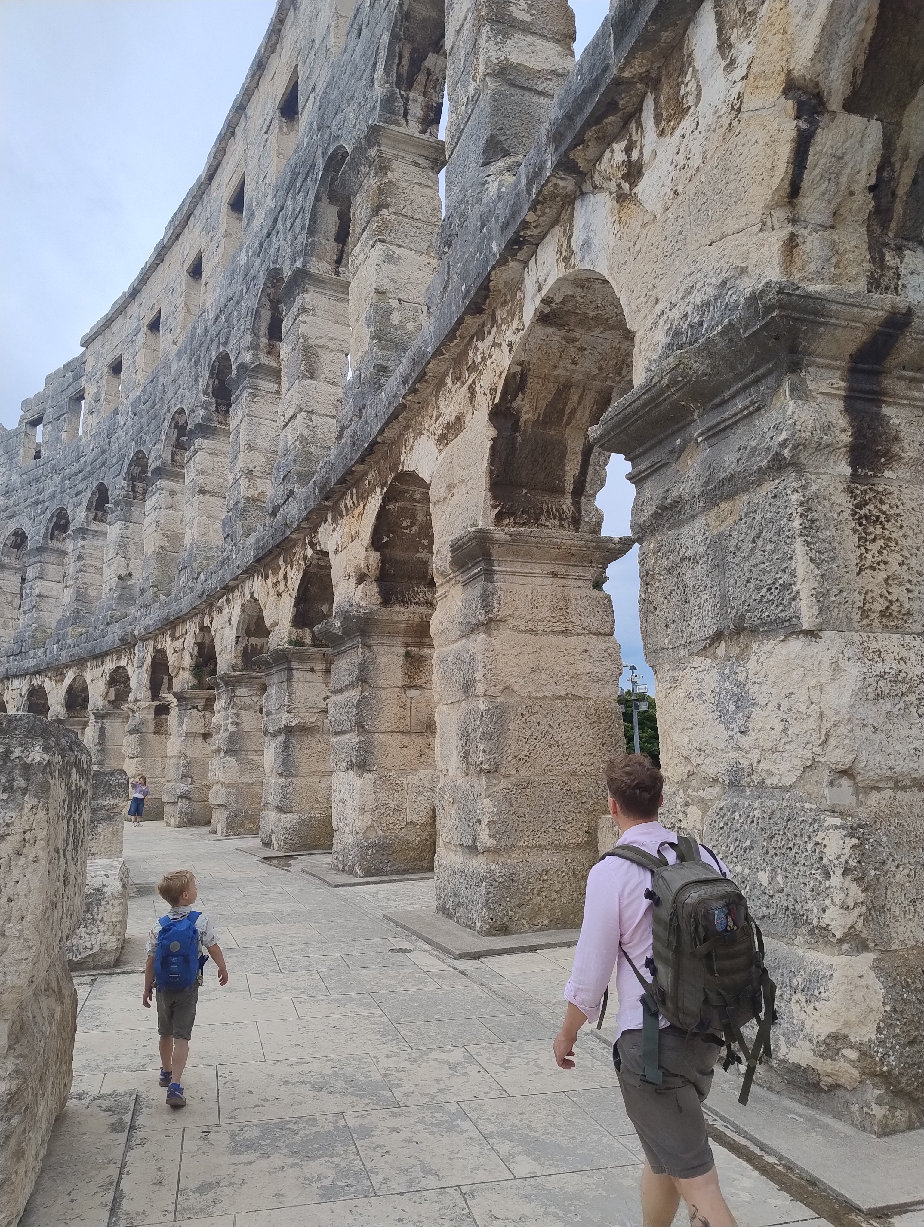 Ostatecznie spędziliśmy w Puli tylko pół dnia i odkryliśmy dla siebie jedynie kawałek tego miasta. Na mnie Pula zrobiła bardzo dobre wrażenie – turystów jest tutaj sporo, ale koncentrują się oni wokół amfiteatru, na ulicy Sergiusza oraz na Forum. Spacerując w niewielkim oddaleniu od tych punktów można spokojnie poprzyglądać się ludziom i architekturze miasta oraz poszukać ciekawych miejsc. Myślę też, że warto przyjechać tam rano. My o 10 zaparkowaliśmy pod samym amfiteatrem, a bilety do tego miejsca kupiliśmy z marszu. Przed 14 do amfiteatru ciągnęła się kilkunastometrowa kolejka, wjazd na parking był zamknięty z powodu braku wolnych miejsc, a z centrum wyjeżdżaliśmy w korku. Na pewno zaoszczędzicie sporo czasu i nerwów, jeśli przyjedziecie do Puli przed południem.