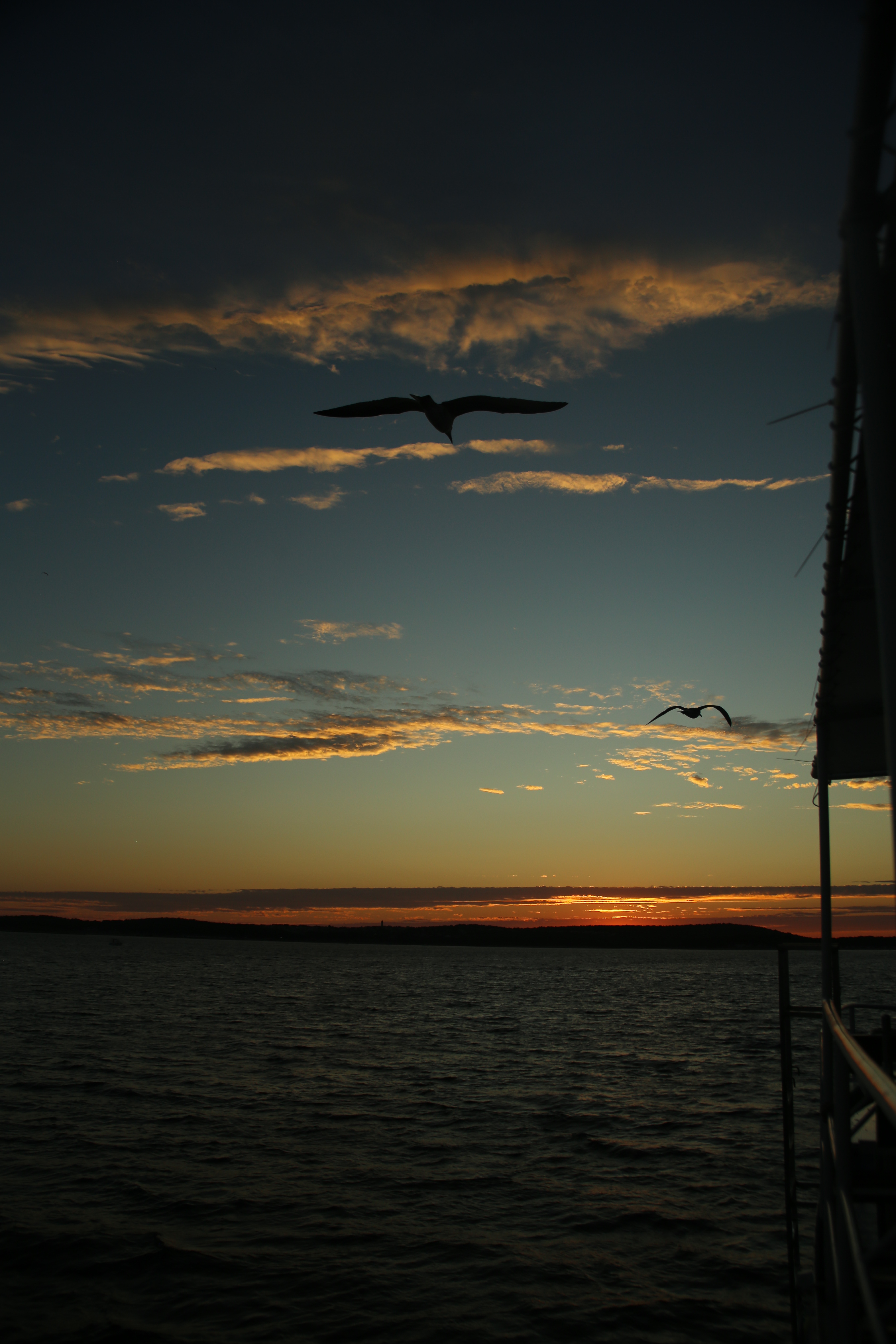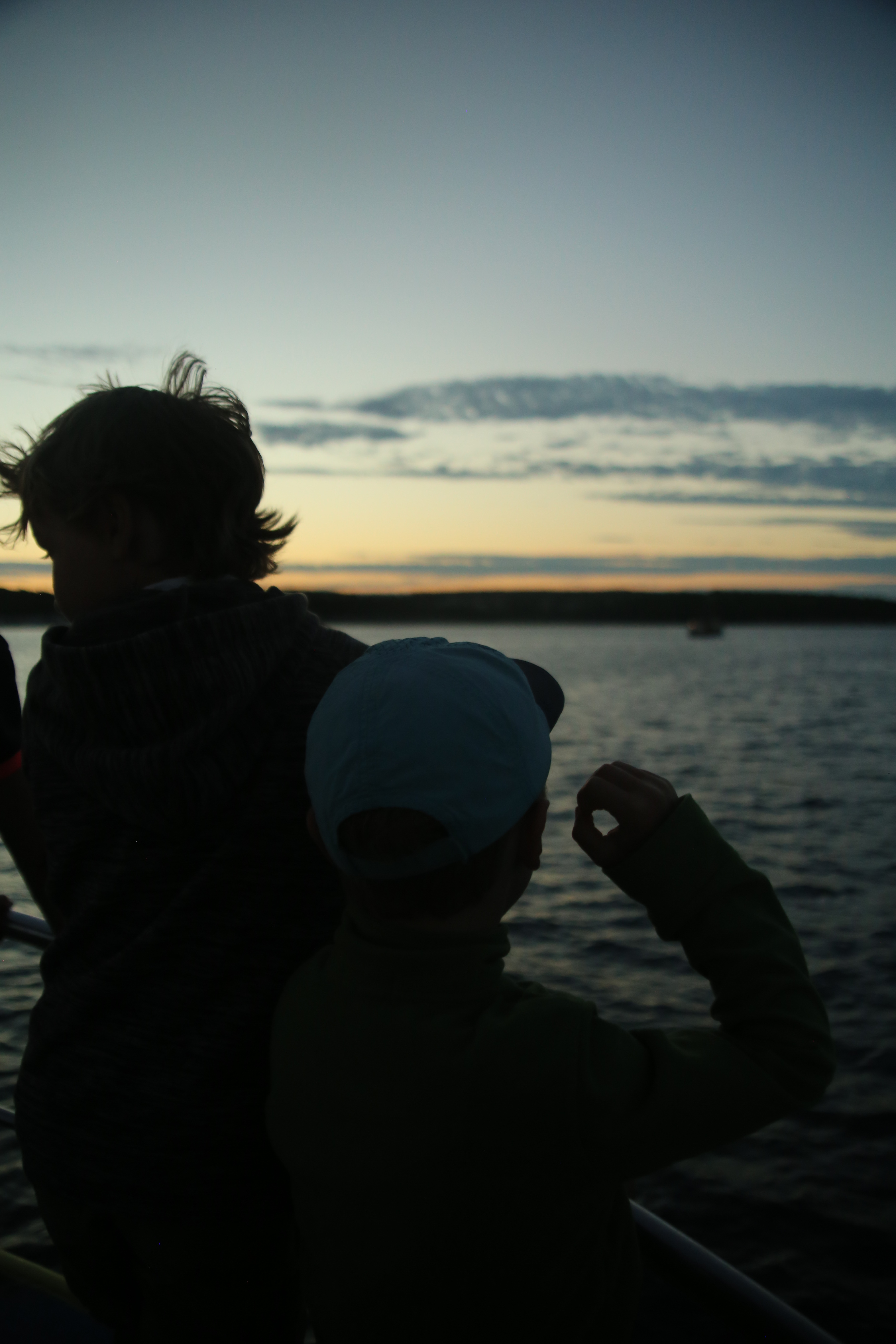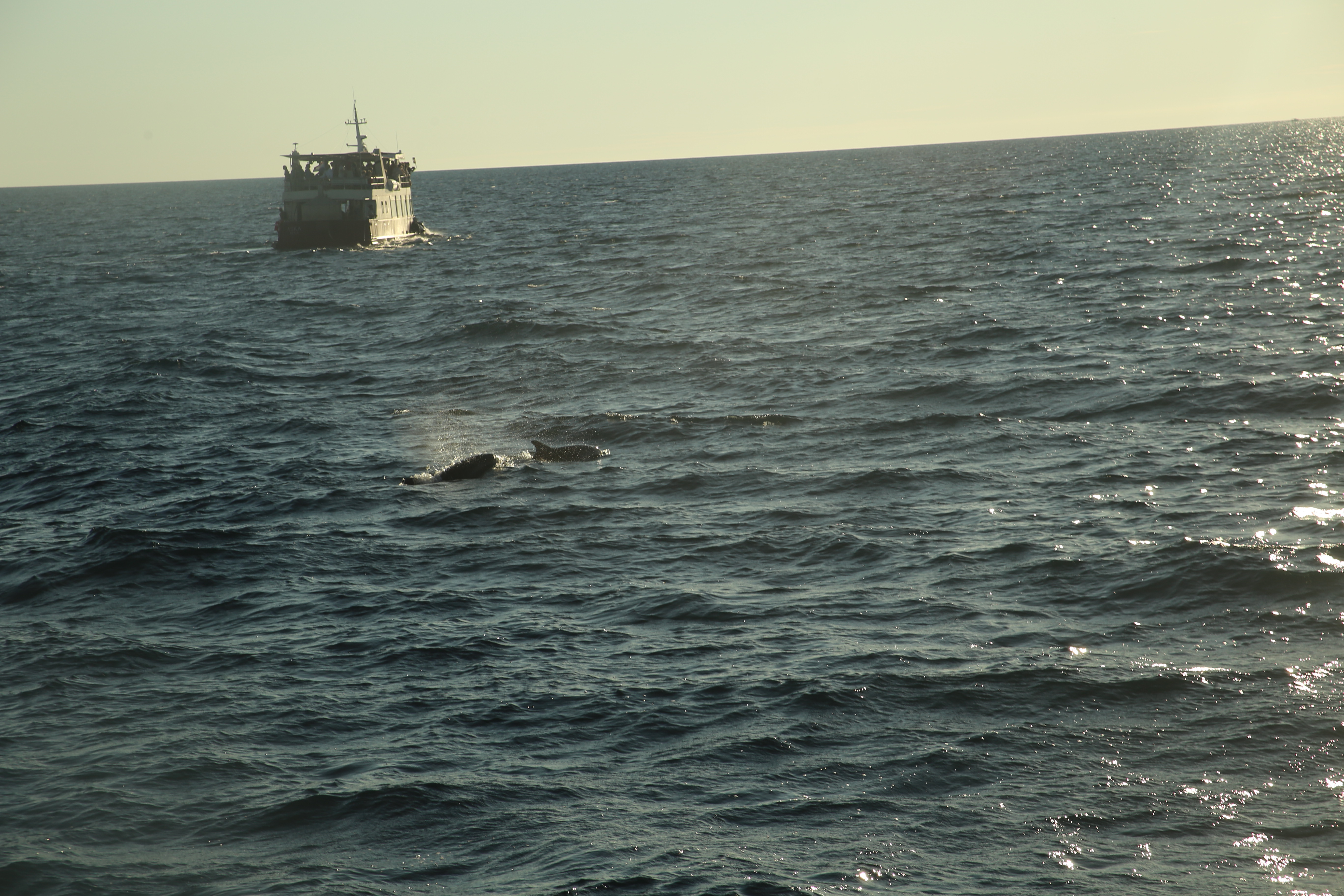 Ostatecznie tuż przed zachodem słońca dookoła przylądka pływała mała flotylla, ale nie wystraszyło to delfinów. Było ich całkiem sporo, i choć zrobienie im zdjęcia nie było proste, to obserwacja była dość łatwa. Na pierwszą informację o zaobserwowanym ssaku większość pasażerów rzuciła się w stronę wskazanej burty, ale okazało się to zbędne. Przez godzinę krążyliśmy w okolicach przylądka i delfiny wyskakiwały z wody raz z jednej, raz z drugiej strony. Można było spokojnie siedzieć na swoim miejscu i po prostu obserwować wodę ze swojej strony. Warunki pogodowe były naprawdę doskonałe, a uroku dodawało specyficzne światło tuż przed zachodem słońca.