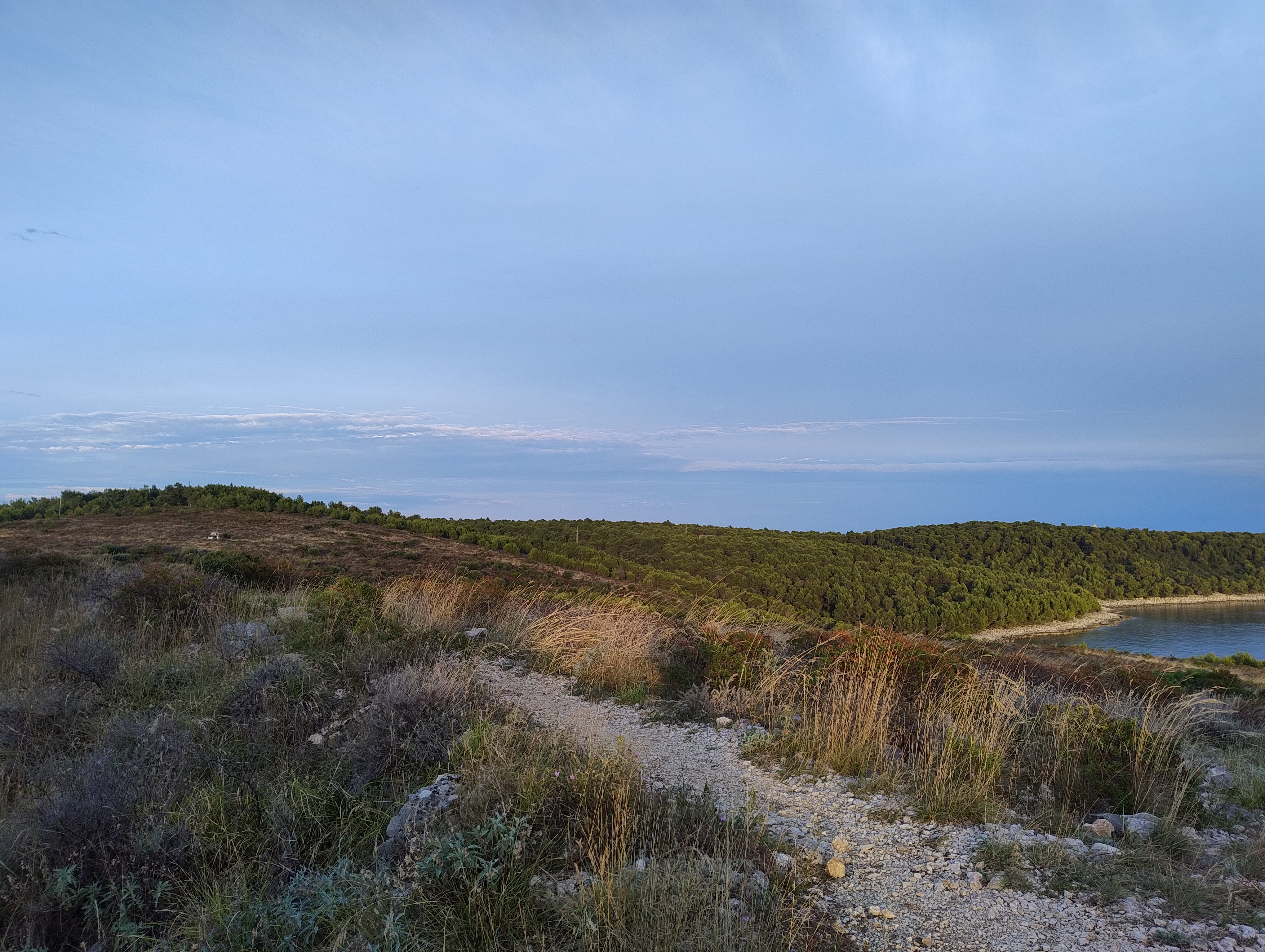 Podczas pobytu w Chorwacji nie zaniechałam treningów, a że póki co trenuję nieco dłuższe dystanse, musiałam znaleźć odpowiednio długą trasę. Mogłam oczywiście kręcić kółka na campingu, ale dla własnego zdrowia psychicznego wybierałam trasy do innych miejscowości i tak trafiłam na rezerwat Kamenjak, a konkretnie jego północną część – Gornji Kamenjak.