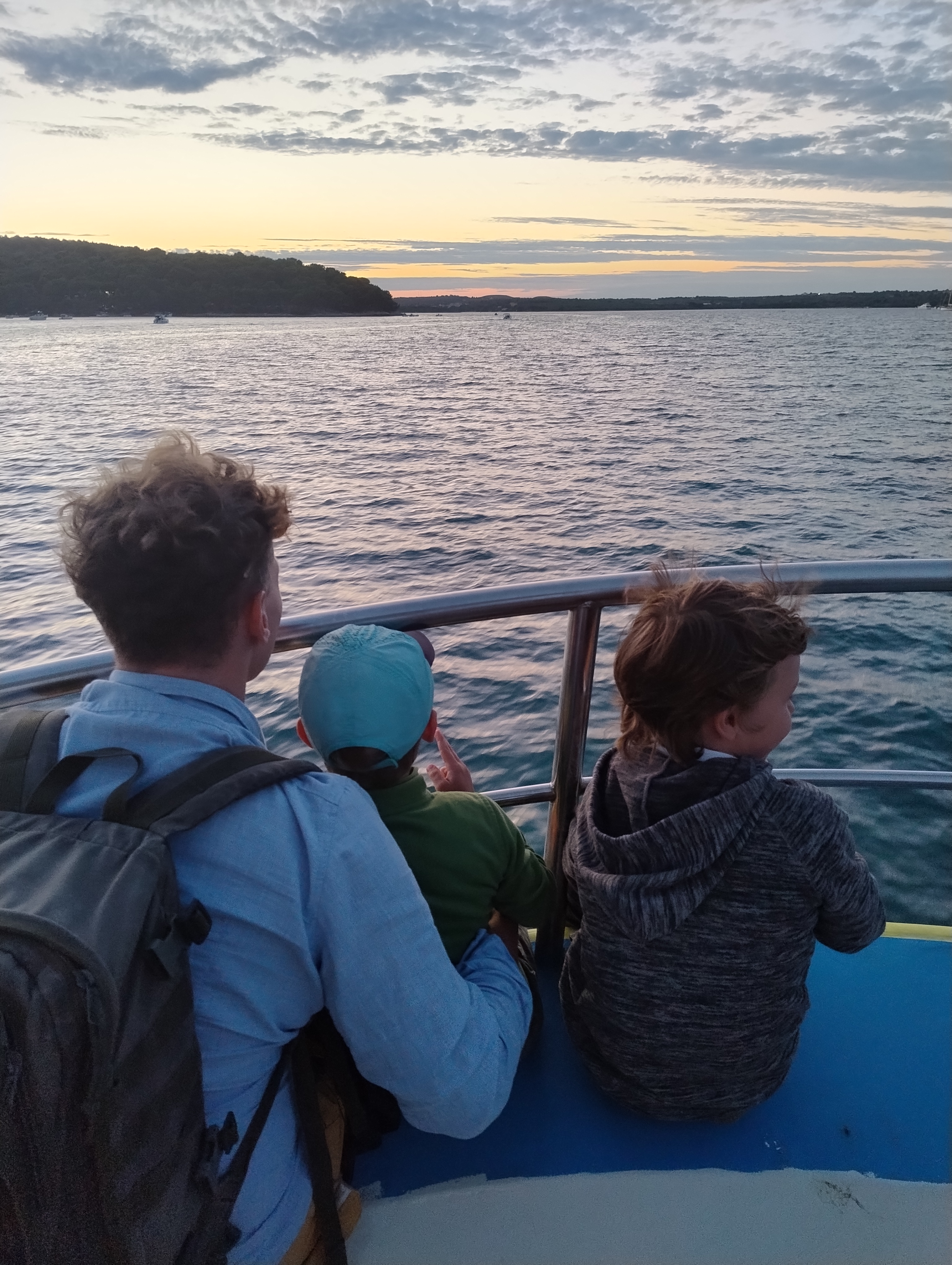 W całej południowej Istrii takich rejsów jest naprawdę dużo; my zdecydowaliśmy się na kurs z Medulin, portowego miasteczka położonego zaledwie kilka kilometrów od naszej bazy wypadowej. Wybraliśmy też rejs połączony z kolacją na pokładzie, żeby nie martwić się szukaniem jedzenia po powrocie z wycieczki. Już na miejscu okazało się, że o tej samej godzinie z portu wypływają dwa statki tej samej firmy, a chwilę potem jeszcze kolejne z innych przedsiębiorstw.