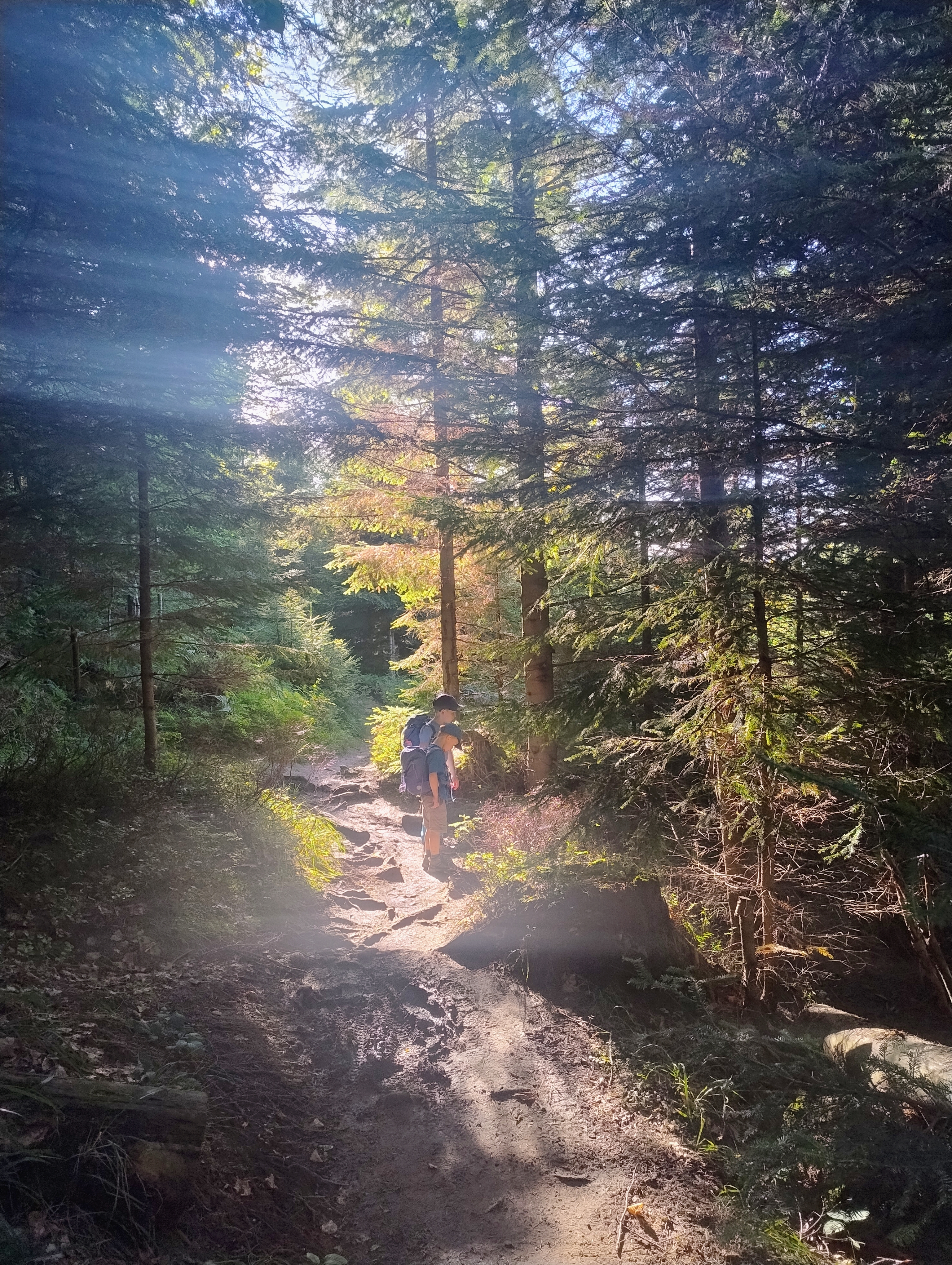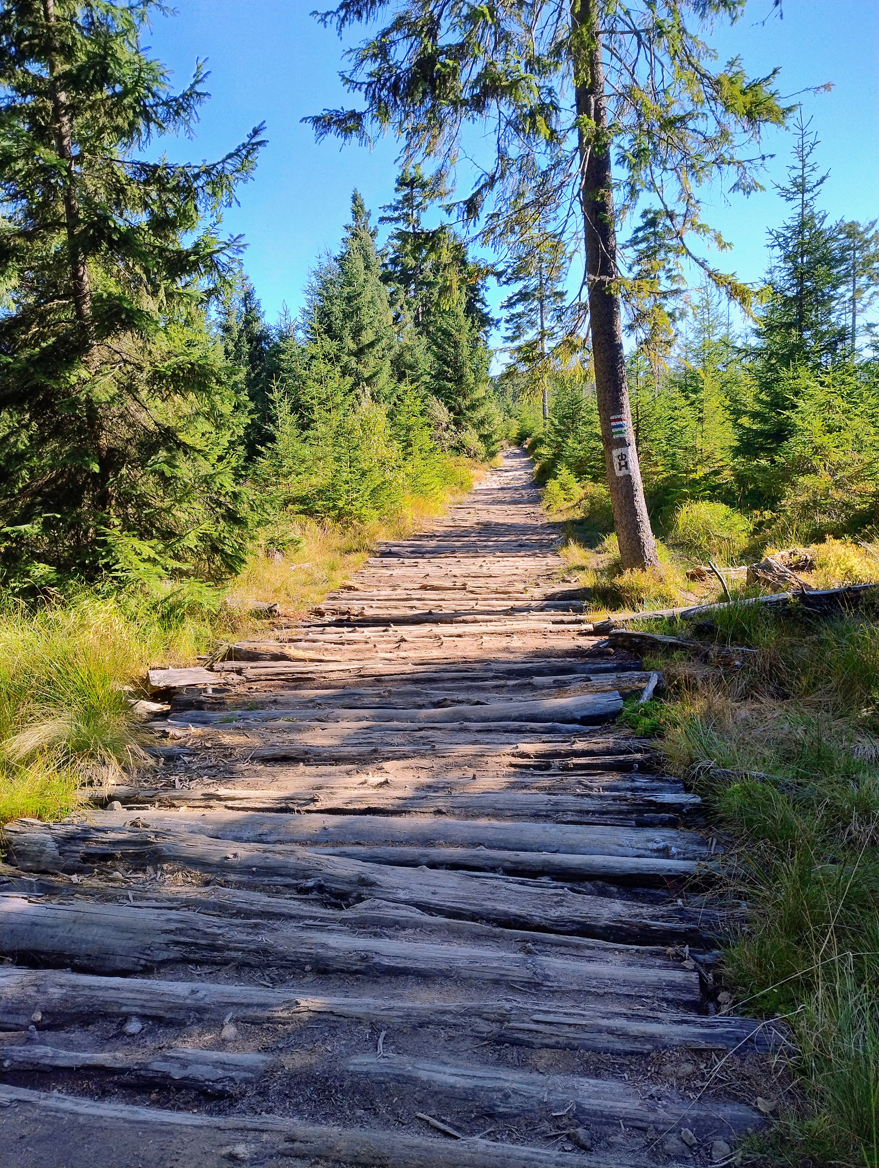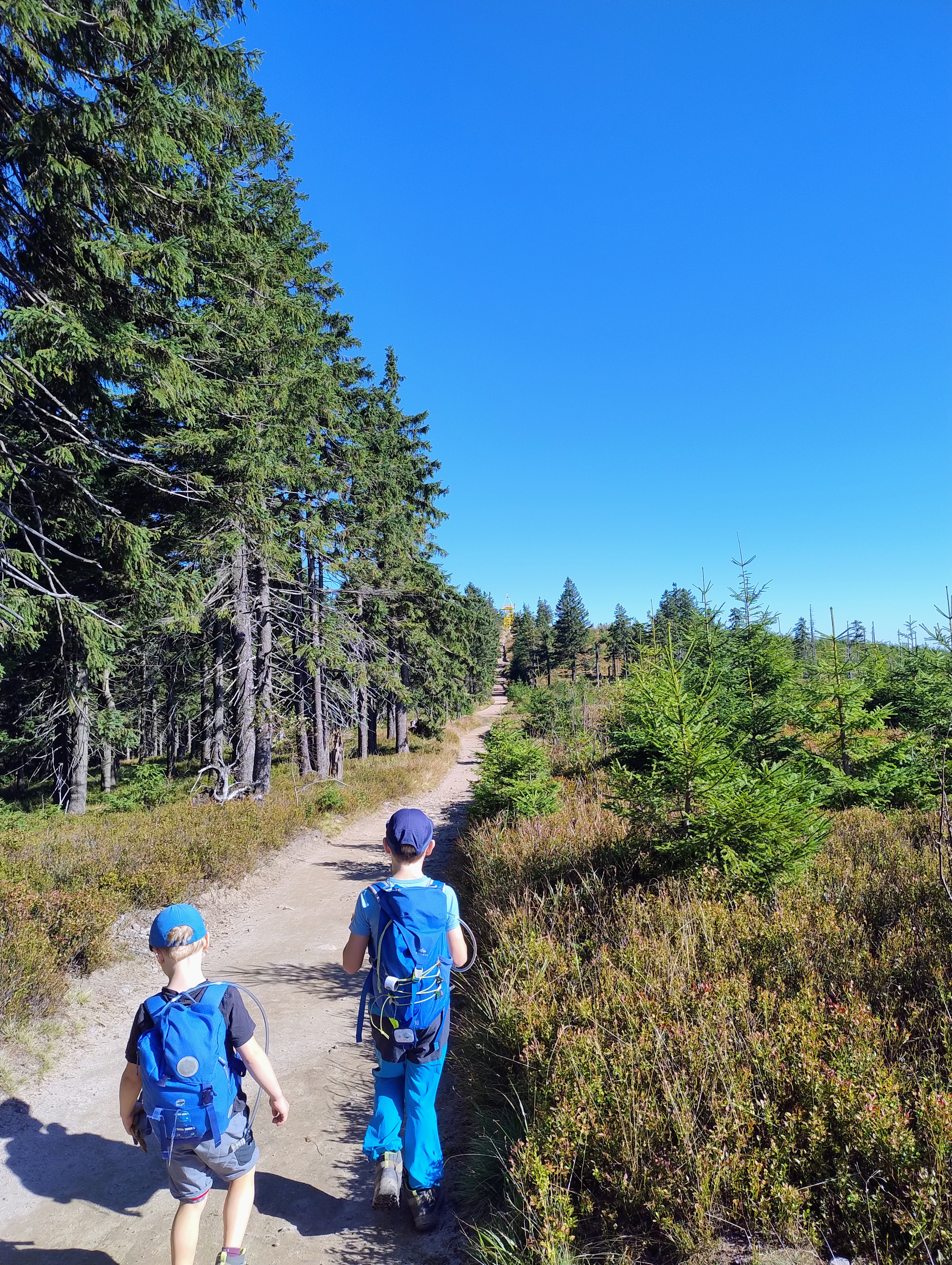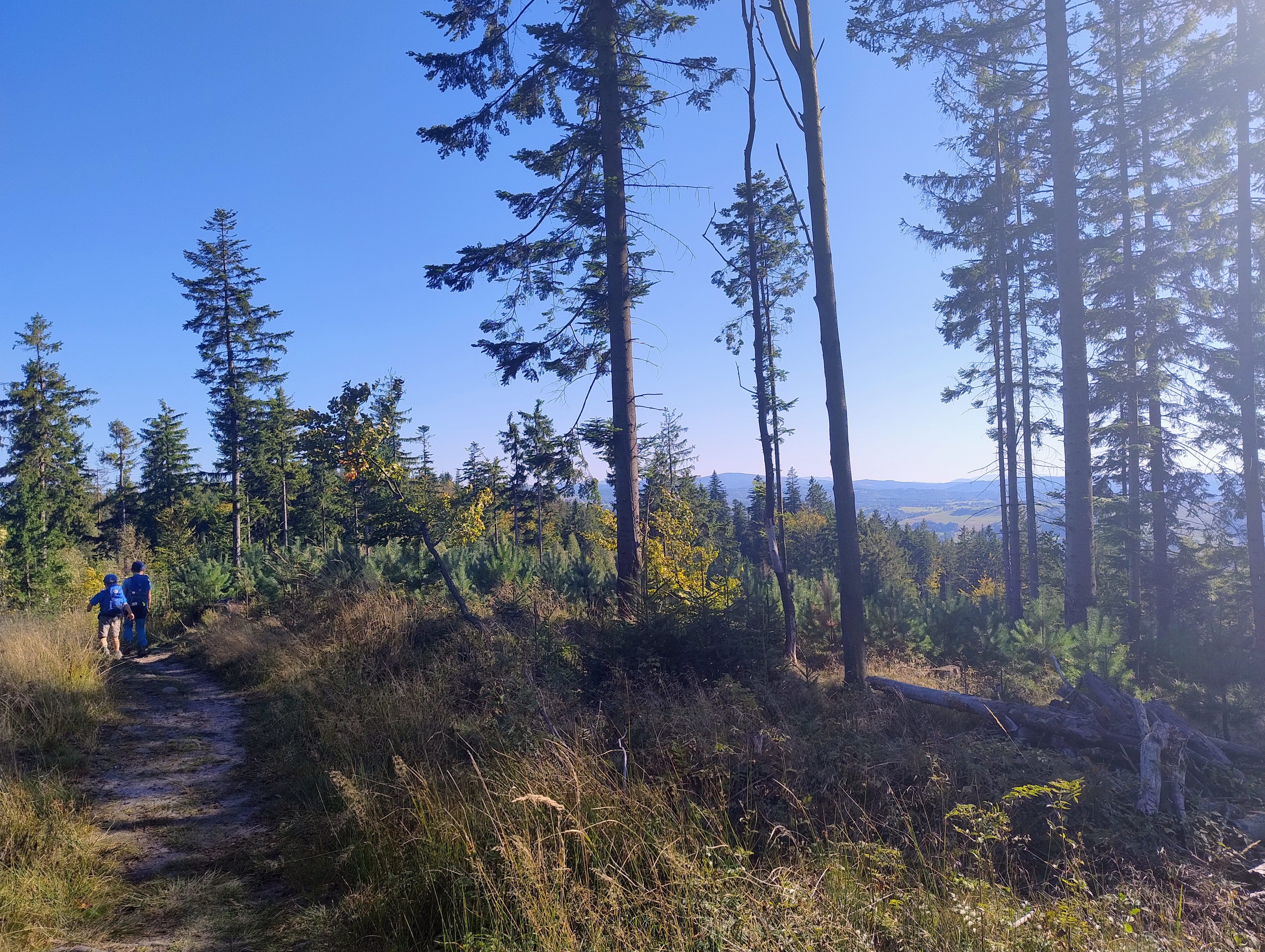 Pierwsza połowa trasy, z Kubalonki do Stecówki, prowadzi przez Szarculę, z której szczytu jest całkiem ciekawy widok. A sam szczyt znajduje się właściwie na Dorkowej Skale, która robi duże wrażenie. Co najważniejsze szlak wiedzie niemal równolegle do drogi asfaltowej i jest przez to pusty. Cały czas szliśmy przez piękny las pełen owoców – po drodze trafiliśmy na poziomki, maliny, trochę jagód i ogrom jeżyn. Dla dzieci taka różnorodna trasa jest dużo ciekawsza niż szlak wysokogórski, na którym, pomimo zapierających dech w piersiach widoków, jest jednak dość monotonnie.