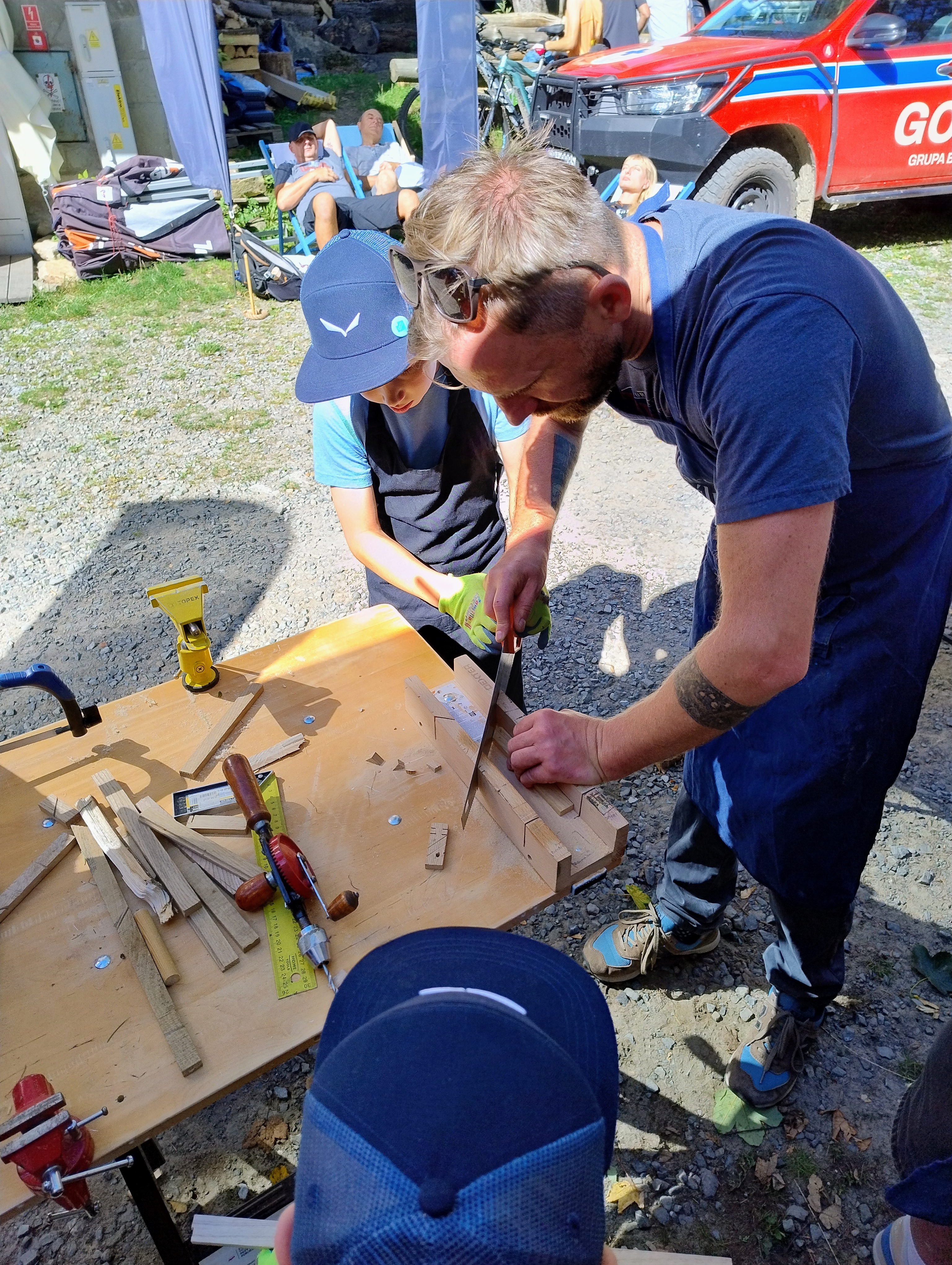 Tymczasem po dojściu do schroniska w pierwszej kolejności udaliśmy się na obiad, a potem skorzystaliśmy z warsztatów. Bo musicie wiedzieć, że Czyste Beskidy to nie tylko akcja zbierania śmieci, ale i wydarzenia towarzyszące. W tym roku w sobotę po południu odbywała się Akademia Czyste Beskidy, czyli warsztaty i prelekcje specjalistów, m.in. znanej dziennikarki i podróżniczki Kamili Kielar czy przewodnika tatrzańskiego Jana Krzeptowskiego Sabały, który prowadzi Tatrologię, fantastyczny profil na Instragramie. Tym razem ze względu na chłopców nie mogłam skorzystać z Akademii, ale super byłoby to nadrobić za rok. Natomiast w niedzielę odbywały się wycieczki przyrodnicze wokół schroniska oraz rozmaite warsztaty, np. szycia czy stolarski. Z tej ostatniej opcji postanowili skorzystać chłopcy i przy pomocy odpowiednich narzędzi oraz pod profesjonalnym nadzorem stworzyli sobie drewniane pamiątki.